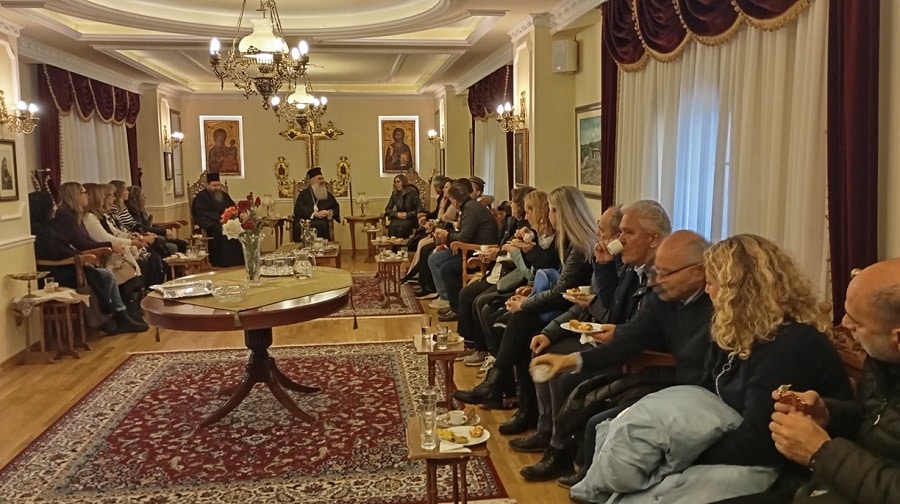 Η Διευθύντρια Πρωτοβάθμιας Εκπαίδευσης Λάρισας, κ. Καραγιώργου Αικατερίνη, και οι συμμετέχοντες/ουσες εκπαιδευτικοί είχαν τη μεγάλη τιμή και την ευλογία να τύχουν της θερμής και εγκάρδιας φιλοξενίας του Σεβασμιότατου Μητροπολίτη Ελασσώνος, κ. Χαρίτωνος, ο οποίος με περισσή αγάπη και ποιμαντική μέριμνα έθεσε υπό την σκέπη του την επίσκεψη, συμβάλλοντας καθοριστικά στην επιτυχία του σκοπού της επιμορφωτικής και εκπαιδευτικής δράσης. Συνόδευσε δε, την περιήγηση στις δύο Ιερές Μονές, ξεναγώντας ο ίδιος στα θρησκευτικά και πολιτιστικά κειμήλια και δίδοντας πολύτιμες και επιστημονικά τεκμηριωμένες πληροφορίες για το ανεκτίμητο περιεχόμενο της πνευματικής κληρονομιάς που διασώθηκε στις Ιερές Μονές.