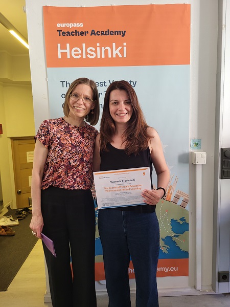 Παράλληλα, η Διευθύντρια του σχολείου, κα Πραντσούδη Σταυρούλα (ΠΕ86-Πληροφορικός), συμμετείχε στο καινοτόμο σεμινάριο “The Secret of Finnish Education: Phenomenon-Based Learning”, στο οποίο αναλύθηκε σε βάθος η φινλανδική προσέγγιση στη μάθηση και η γενικότερη κουλτούρα της σχολικής εκπαίδευσης στη Φινλανδία, χώρα που αναγνωρίζεται διεθνώς για τα εξαιρετικά εκπαιδευτικά της αποτελέσματα.