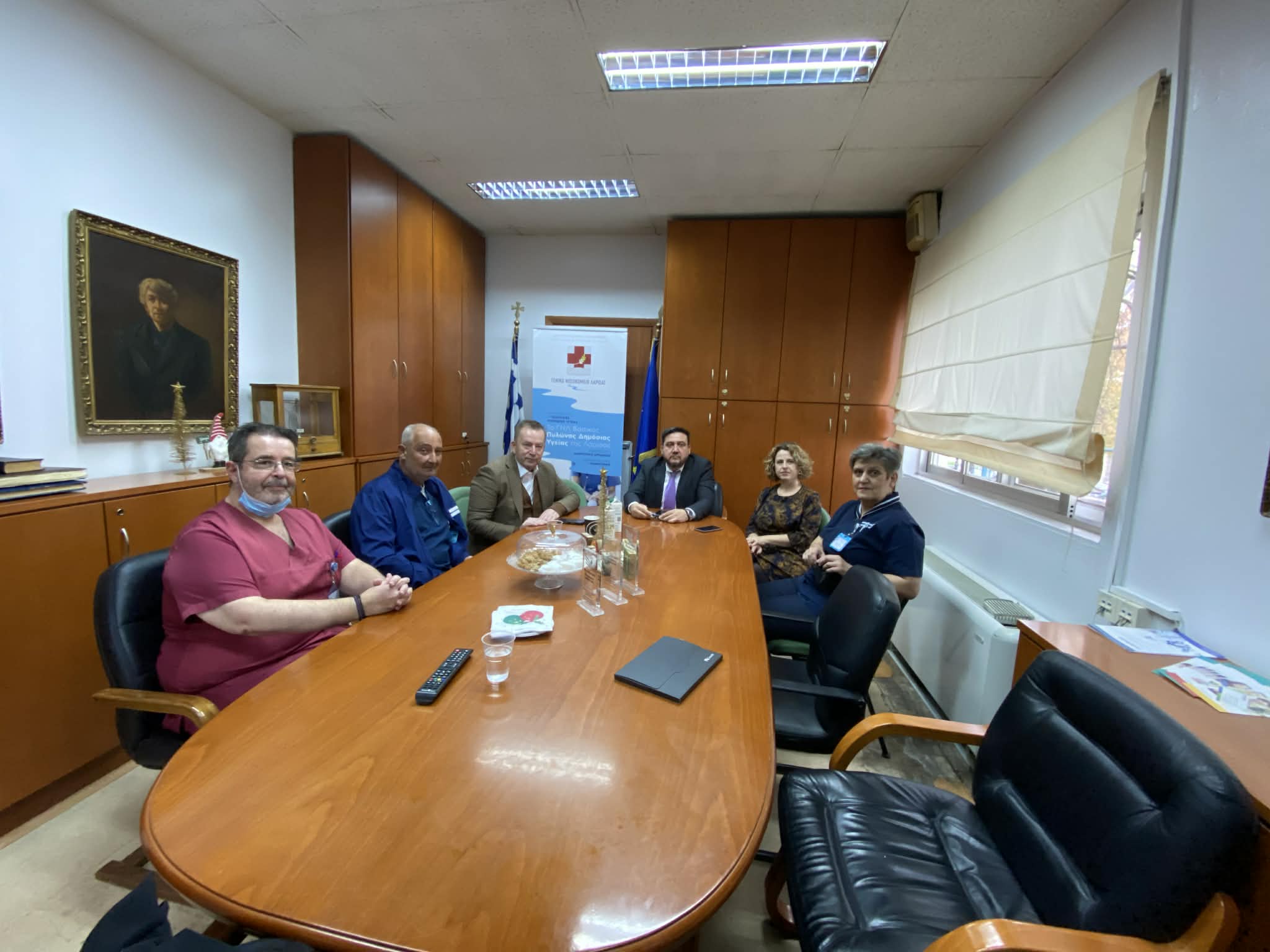 Στο πλαίσιο της παρουσίας του στο νοσηλευτικό ίδρυμα, συναντήθηκε με τον Διοικητή του Γενικού Νοσοκομείου Λάρισας, κ. Γρηγόρη Βλαχάκη, καθώς και με στελέχη της διοίκησης και των ιατρικών υπηρεσιών. Ειδικότερα, είχε συναντήσεις με τον Τομεάρχη Παθολογικού κ. Ευάγγελο Γεωργίου, την Τομεάρχη Χειρουργικού κα Ευαγγελία Γκοντριά, τον Προϊστάμενο Αιμοδοσίας κ. Πέτρο Μυλωνή και τη Διευθύντρια Διοικητικής – Οικονομικής Υπηρεσίας κ. Δήμητρα Σαρακατσάνου.