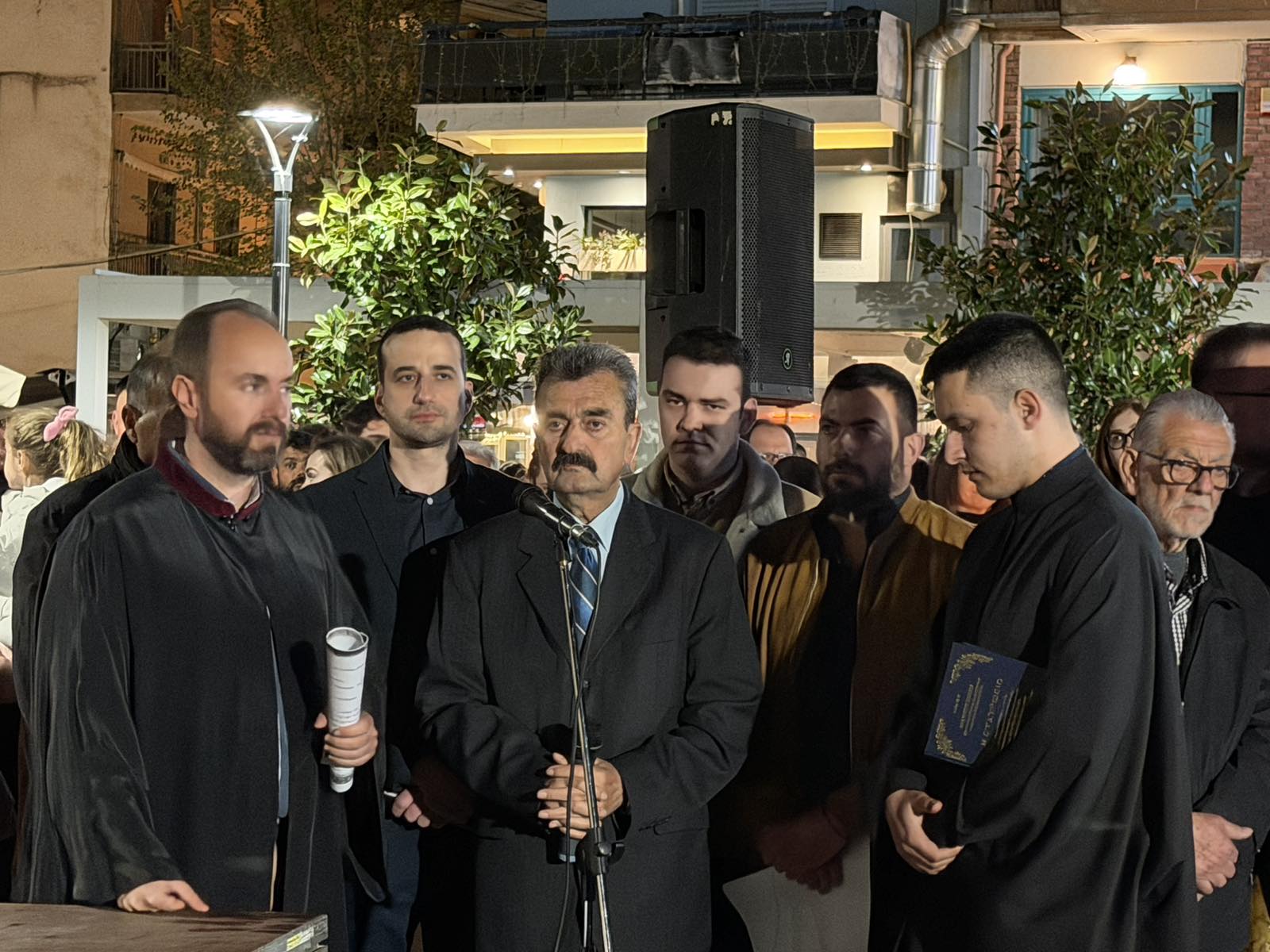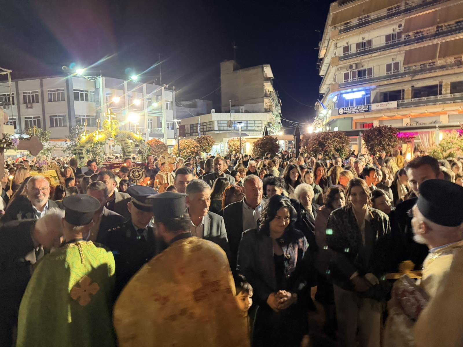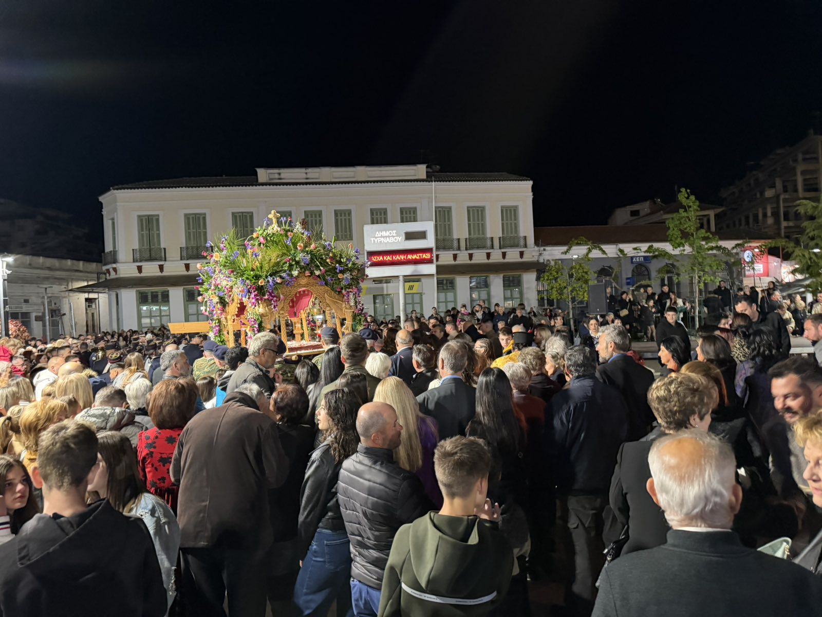 Με περισσή ευλάβεια και με την πρέπουσα λαμπρότητα πραγματοποιήθηκε σήμερα στον Τύρναβο παρουσία εκπροσώπων των τοπικών αρχών και πλήθους πιστών η περιφορά των επιταφίων και η συγκέντρωσή τους στην κεντρική πλατεία της πόλης.