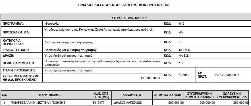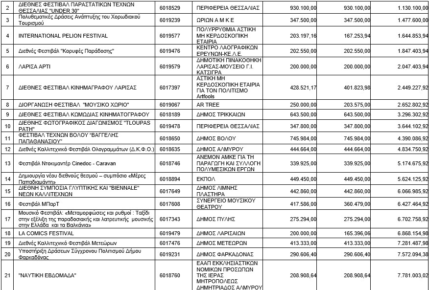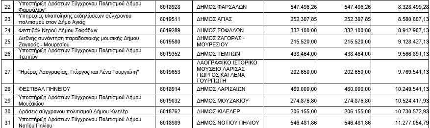 Η Περιφέρεια Θεσσαλίας χρηματοδοτεί τους φορείς του Πολιτισμού με 12 εκατ €
