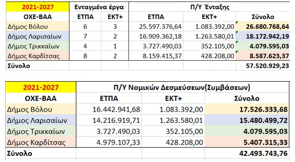 Η σημερινή αποτύπωση της υφιστάμενης κατάστασης (18/4) που αφορούν στα ΣΒΑΑ των 4 πρωτευουσών των Περιφερειακών Ενοτήτων Θεσσαλίας αποτυπώνεται στους πίνακες που ακολουθούν:
