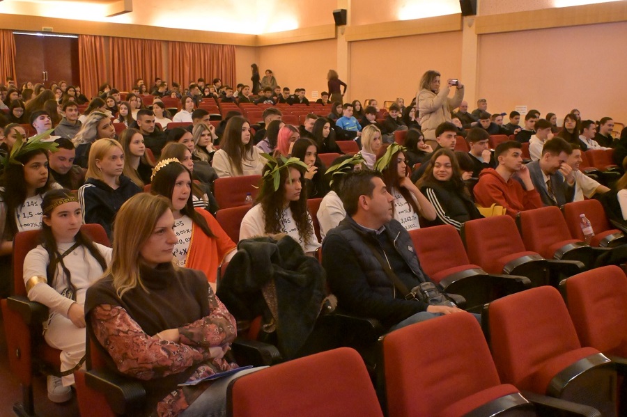 Πολιτισμός και Βραβεύσεις Η γιορτή συνεχίστηκε με εξαιρετικά θεατρικά και μουσικά δρώμενα, τα οποία προετοίμασαν με μεράκι οι μαθητές του 6ου και του 11ου Γενικού Λυκείου Λάρισας. Στη συνέχεια, ακολούθησαν οι βραβεύσεις των μαθητών που διακρίθηκαν στην επίλυση γρίφων.