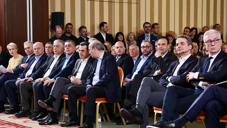 «Σας καλωσορίζουμε σήμερα στη Λάρισα, στην καρδιά του αγροτικού κόσμου και της παραγωγικής Ελλάδας. Του κόσμου που επί χρόνια δίνει ισχυρή ψήφο εμπιστοσύνης στην Νέα Δημοκρατία. Των ανθρώπων που παραμένουν η βάση αλλά και η ψυχή της παράταξης. Που ποτέ δεν απεμπολήσαμε, ποτέ δεν αγνοήσαμε, ποτέ δεν προδώσαμε.