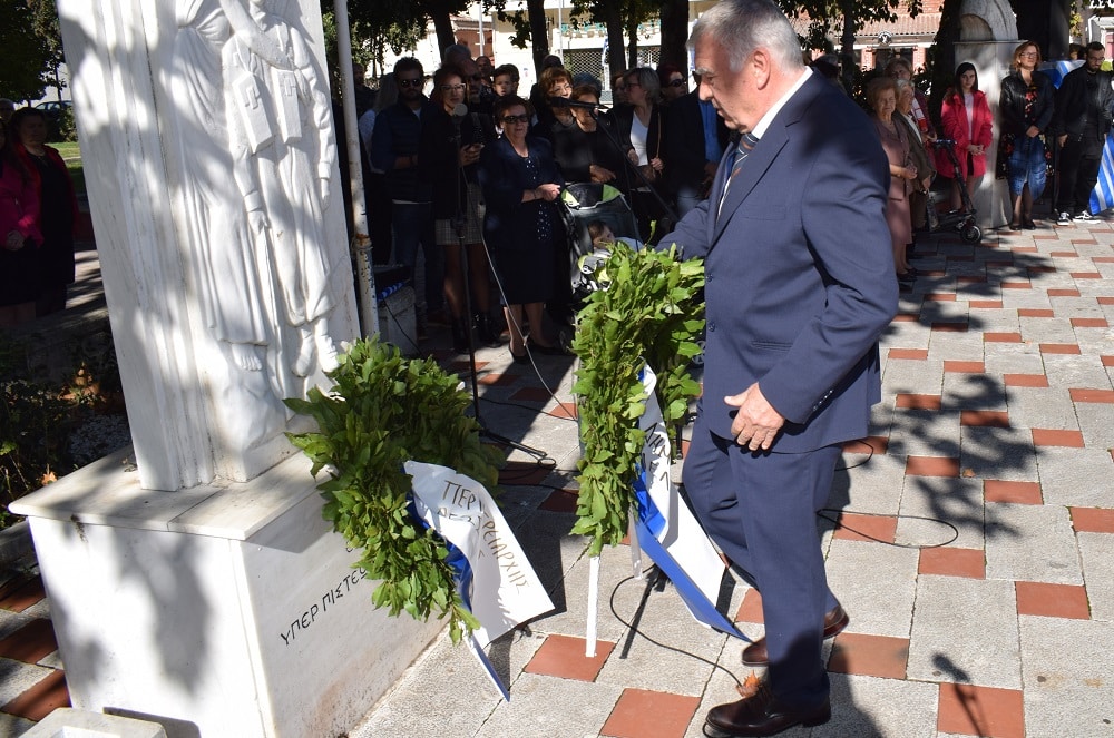 Στη συνέχεια έγινε επιμνημόσυνη δέηση, προεξέχοντος του εφημέριου του Ι.Ν Αγίου Γεωργίου Αριστείδη Οικονόμου και κατάθεση στεφάνων από το Δήμαρχο και λοιπούς επισήμους στον χώρο του Μνημείου των Ηρώων και ακολούθησε παρέλαση όλων των βαθμίδων της εκπαίδευσης.