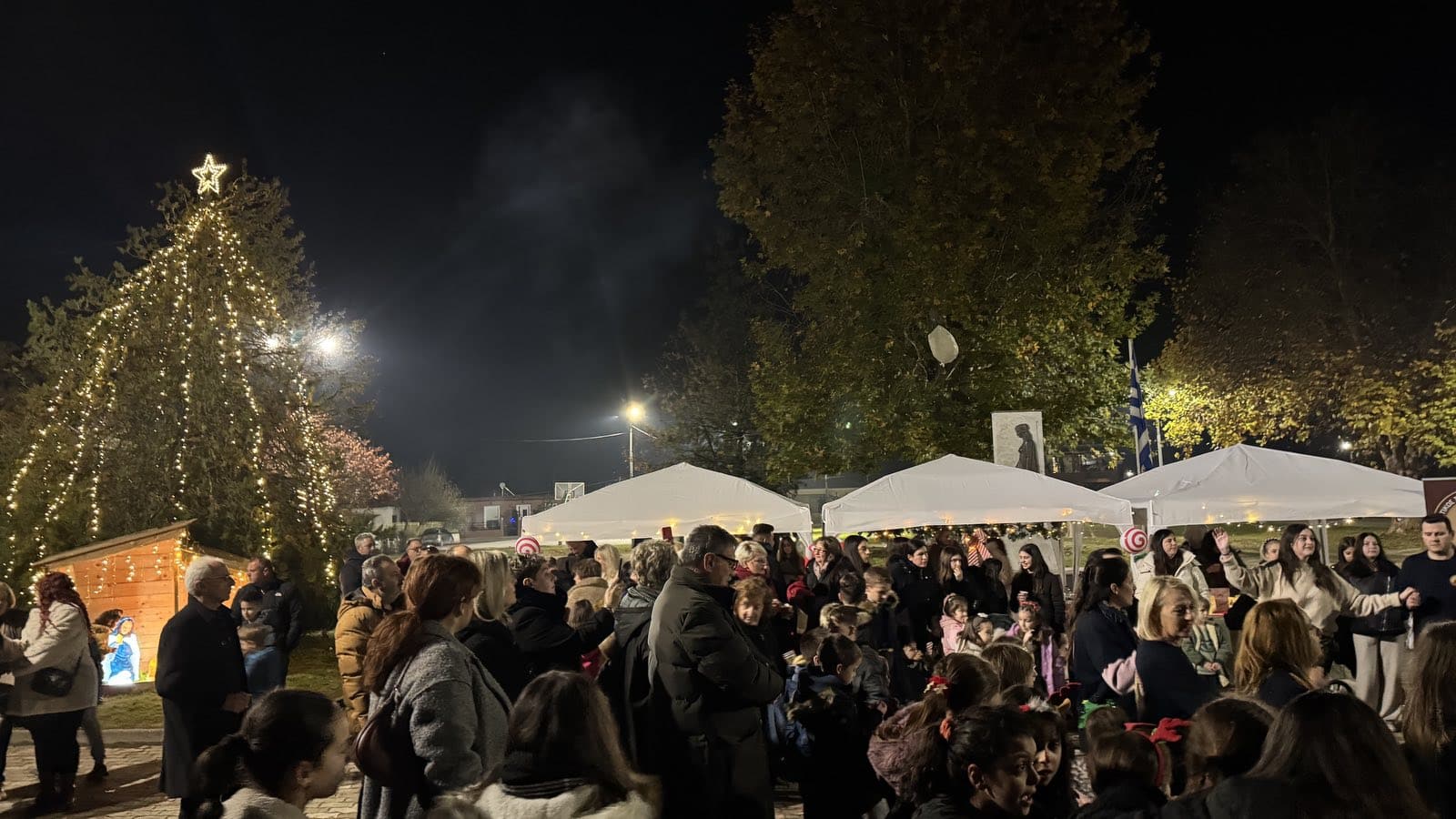 Με τις φωνές των μικρών παιδιών που μετρούσαν αντίστροφα άναψε το δένδρο στην πλατεία του χωριού.