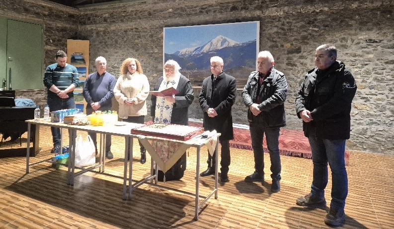 Την πίτα ευλόγησε ο ιερέας της Δημοτικής Κοινότητας Συκουρίου, π. Γεώργιος, δίνοντας τις ευχές του για μία δημιουργική και ευλογημένη χρονιά.