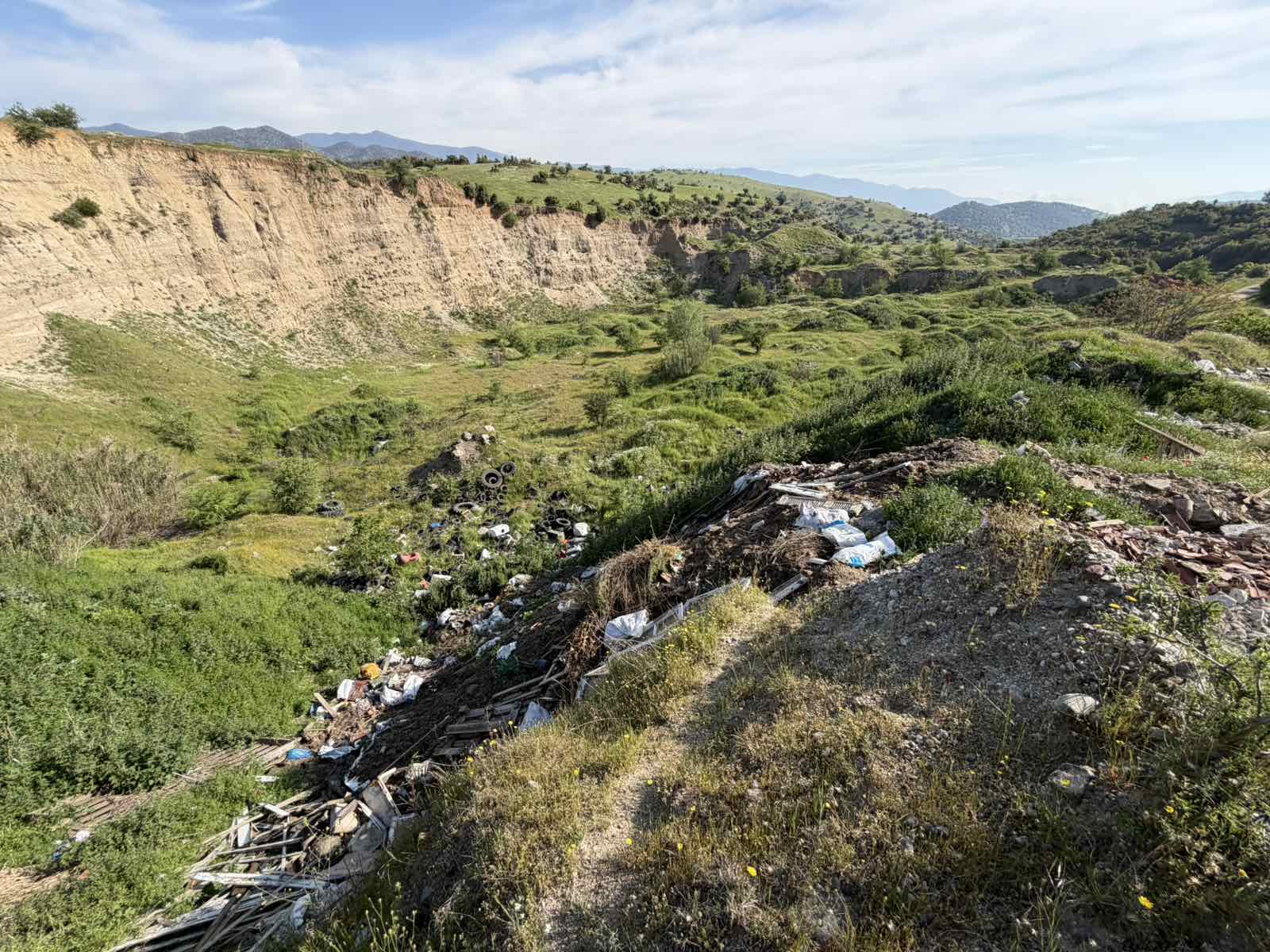 Σε μια απέραντι χωματερή έχουν μετατρέψει ασυνείδητοι περιοχή φυσικού κάλους στο Μοπουγιατζί της Ροδιάς στο κομμάτι προς τον Αγιο Αθανάσιο πετώντας ότι έχουν στην κατοχή τους και θέλουν να τα ξεφορτωθούν.