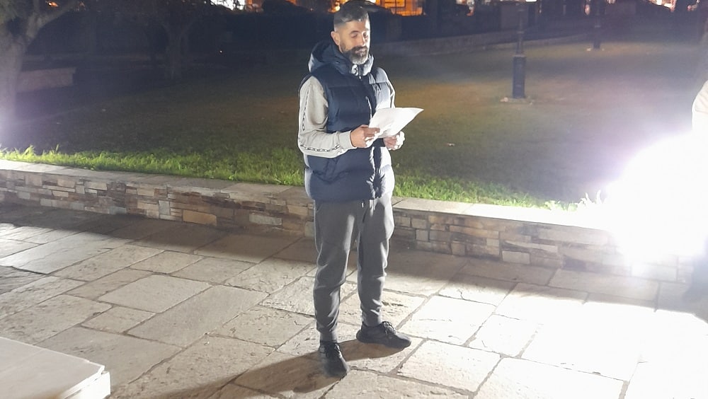 Την κεντρική ομιλία έκανε ο πρόεδρος του τοπικού παραρτήματος του συνδικάτου Οικοδόμων Γ. Κιτσούλης που ανέφερε: