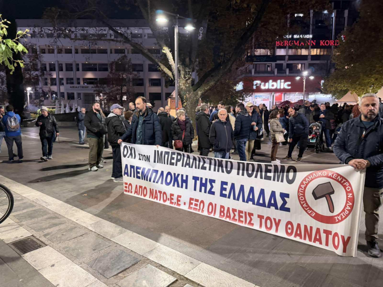Με αυτόν τον τρόπο αναδείχθηκε πλατιά το αίτημα να φύγει τώρα από την 1η Στρατιά και τη Λάρισα το Ευρωστρατηγείο, να σταματήσει να αξιοποιείται ως Κέντρο Συντονισμού της επιχείρησης «Aspides» της ΕΕ στην Ερυθρά Θάλασσα και να κλείσουν οι αμερικανικοΝΑΤΟικές βάσεις του θανάτου στην 110 ΠΜ και στην υπόλοιπη χώρα.