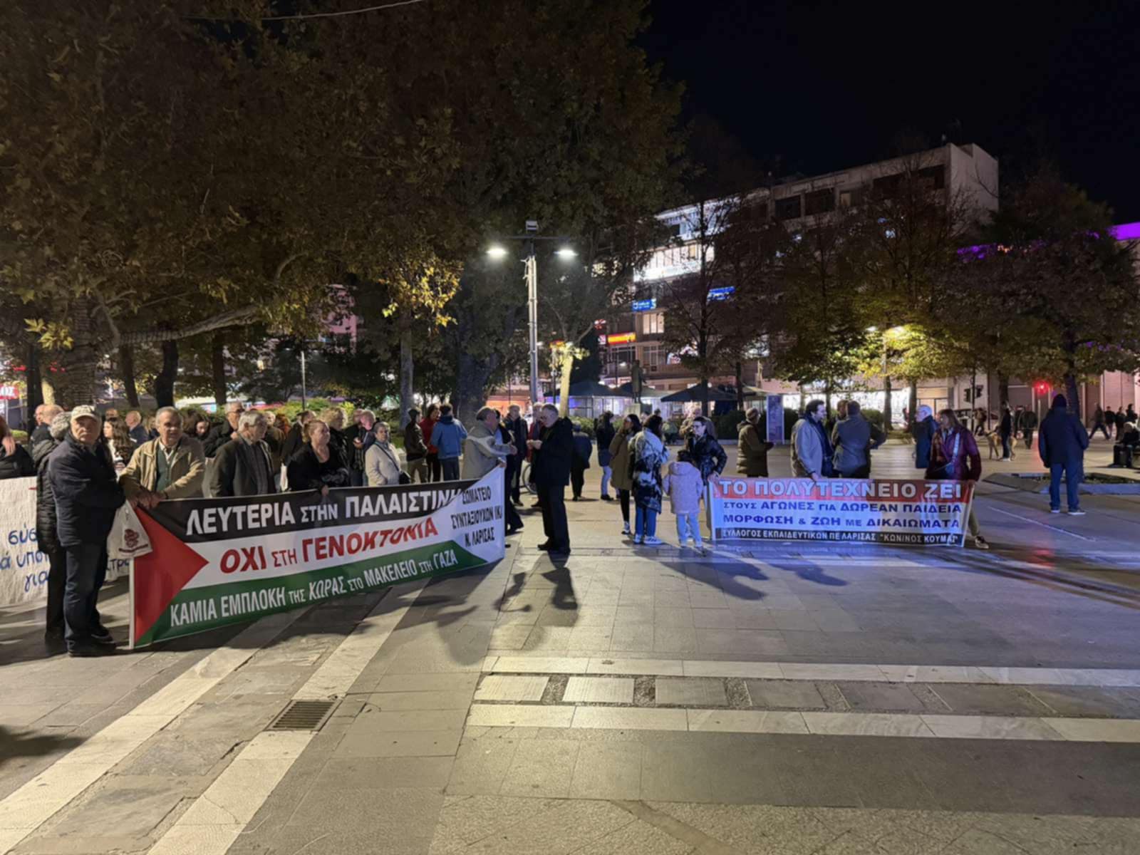 Στην κεντρική πλατεία της Λάρισας βρέθηκαν άνθρωποι όλων των ηλικιών με τα πανό των φορέων τους να αναδεικνύουν τα επίκαιρα μηνύματα του ηρωικού ξεσηκωμού του Πολυτεχνείου 52 χρόνια μετά. Νωρίτερα, στεφάνια στην πλατεία Τάκη Γαργαλιάνου κατέθεσαν αντιπροσωπείες των Οργανώσεων Λάρισας του ΚΚΕ και της ΚΝΕ και των μαζικών φορέων.