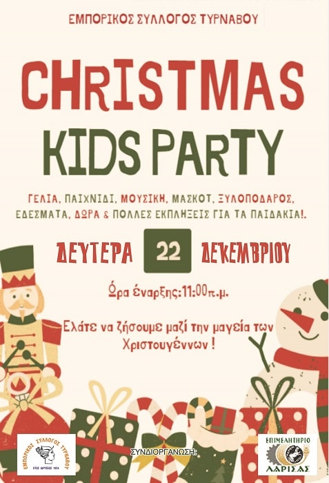 Ενα παιδικό πάρτι στο οποίο είναι καλεσμένα όλα τα παιδιά του Τυρνάβου, για να ζήσουν τη μαγεία των γιορτών, διοργανώνει αύριο Δευτέρα 22 Δεκεμβρίου στις 11.00 το πρωί στην κεντρική πλατεία ο Εμπορικός Σύλλογος της πόλης σε συνεργασία με το επιμελητήριο.