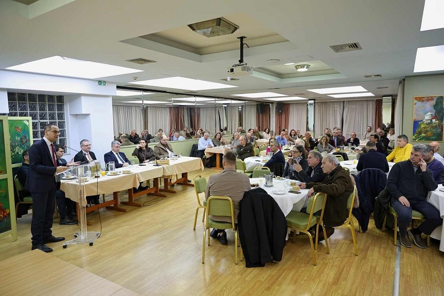 Τέλος, ο Υπεύθυνος της Νομαρχιακής Κοινότητας και επικεφαλής της Θεματικής Ομάδας Αγροτικής Ανάπτυξης και Τροφίμων, κ. Χρήστος Κουτσιόπουλος, περιέγραψε με δραματικούς τόνους τα προβλήματα του πολύπαθου πρωτογενούς τομέα και παρουσίασε συνοπτικά τη λύση που προτείνει το Κίνημα, σε συνδυασμό με την αντιμετώπιση του δημογραφικού και τη μακροπρόθεσμη ενίσχυση της εθνικής οικονομίας.