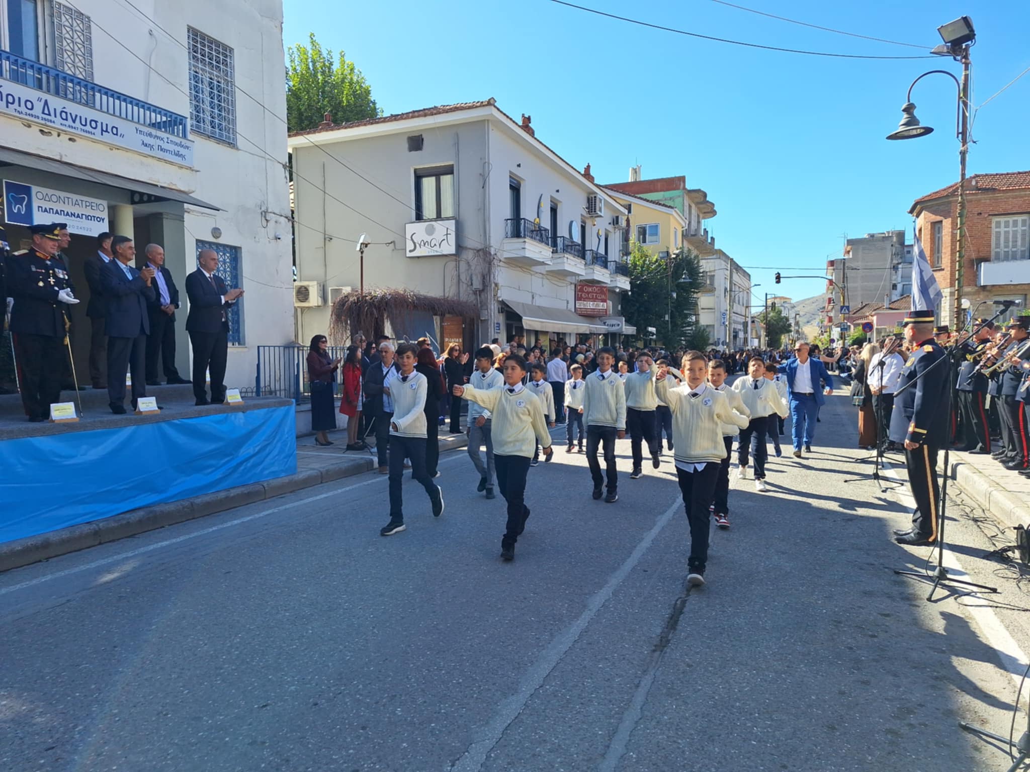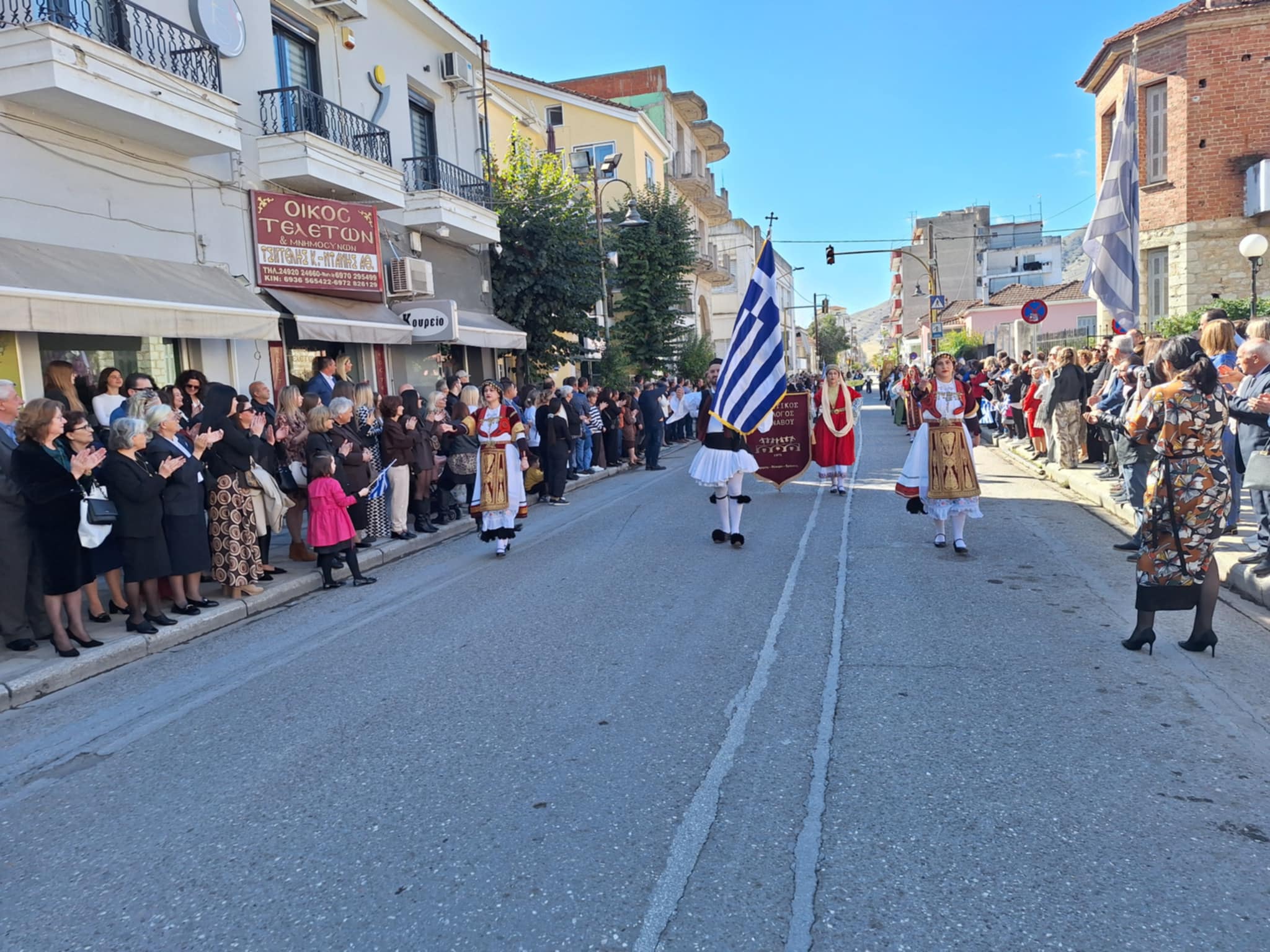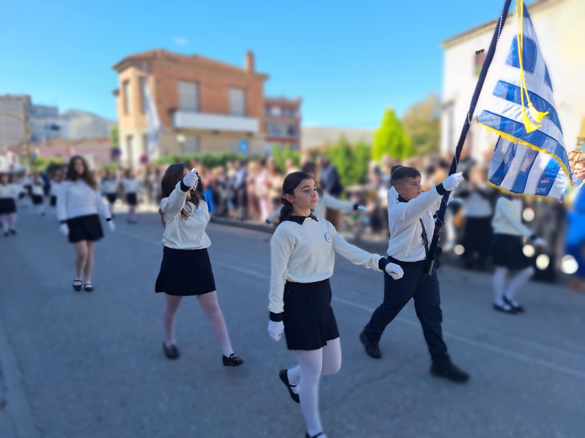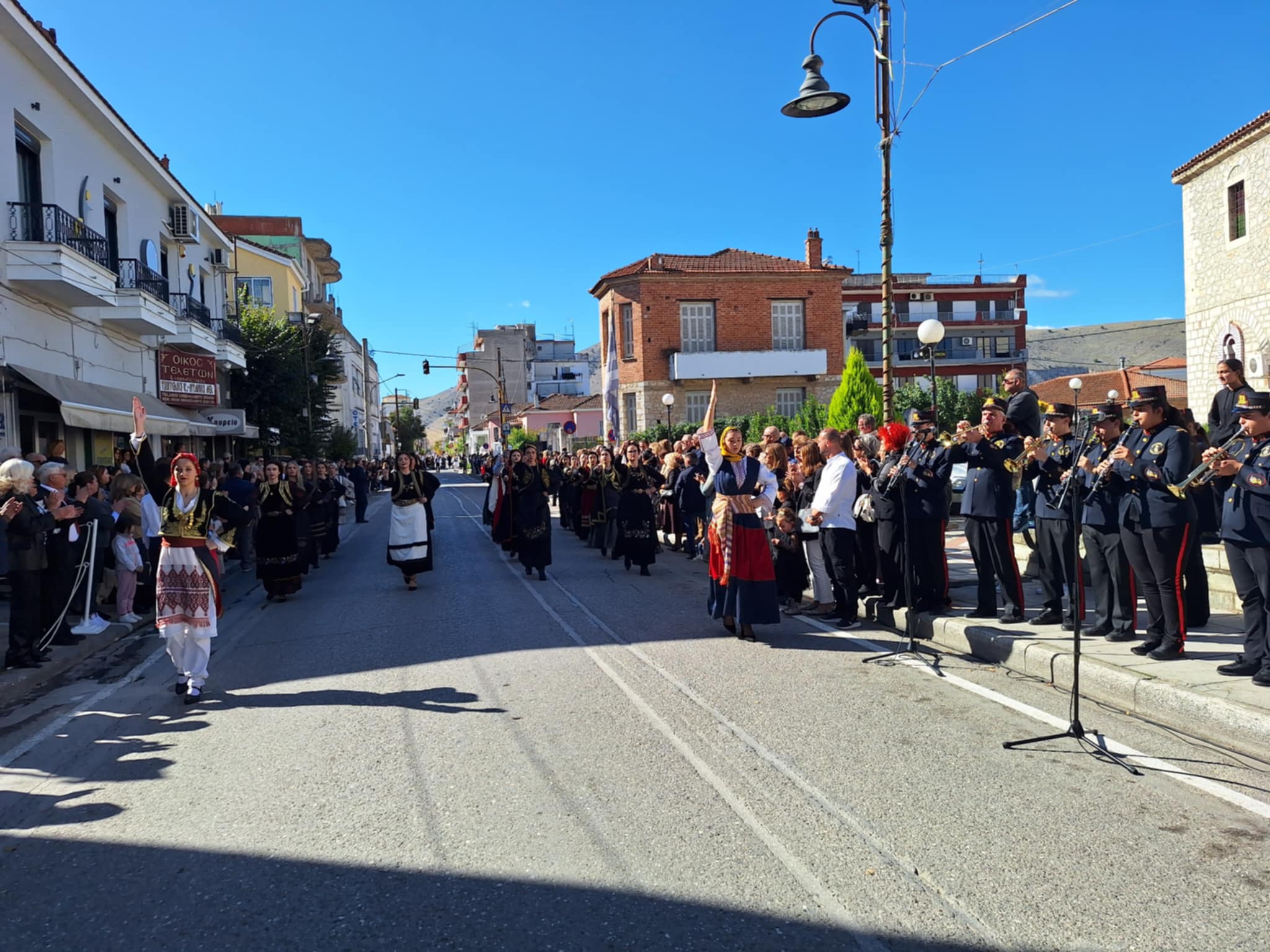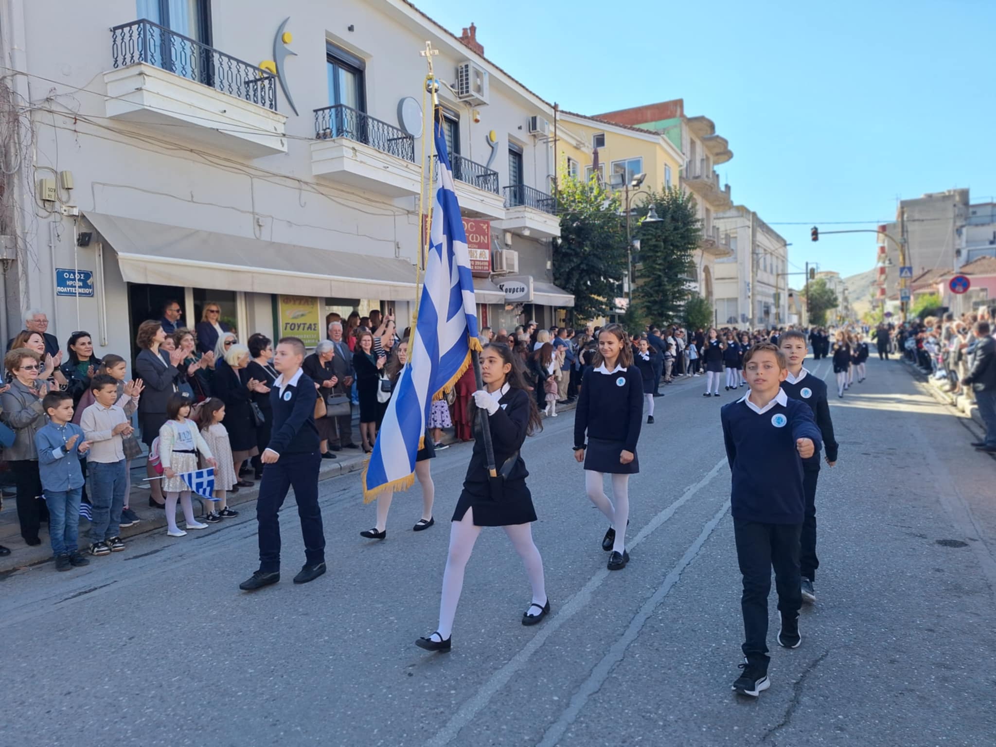 Το μέγα πλήθος του κόσμου παρακολούθησε τη μαθητική παρέλαση που έγινε με τους ήχους της φιλαρμονικής του δήμου και καταχειροκρότησε τους μαθητές.