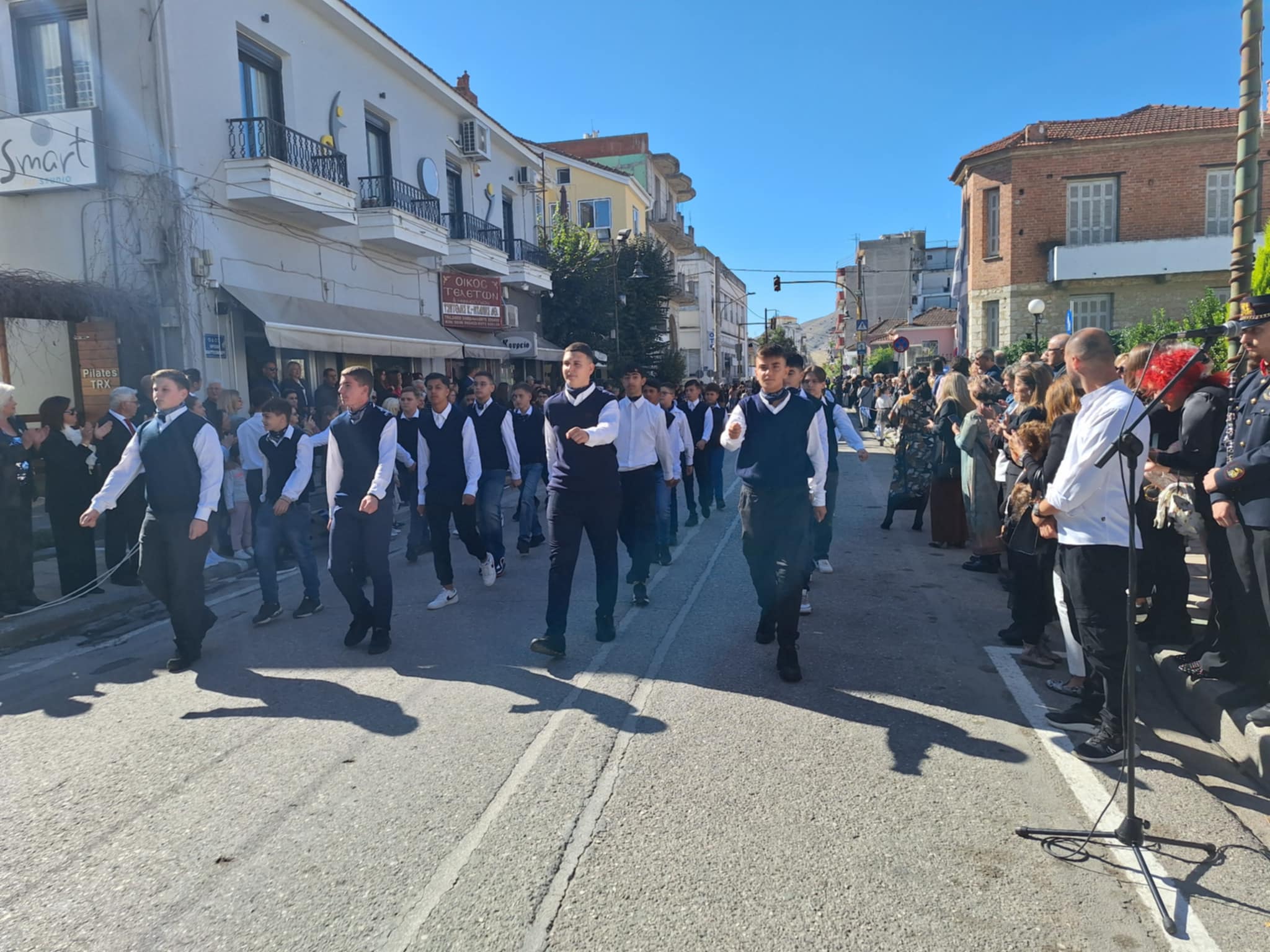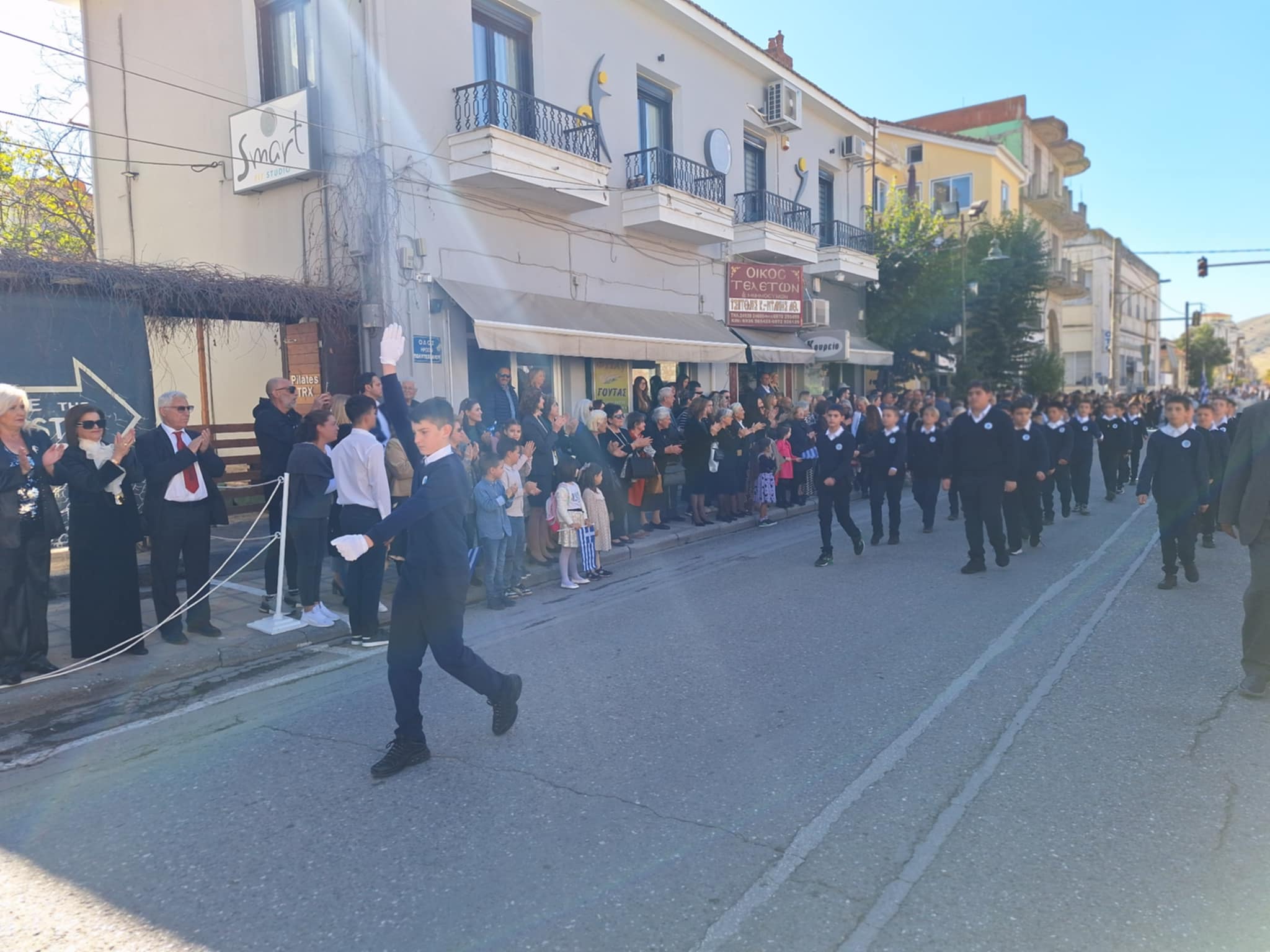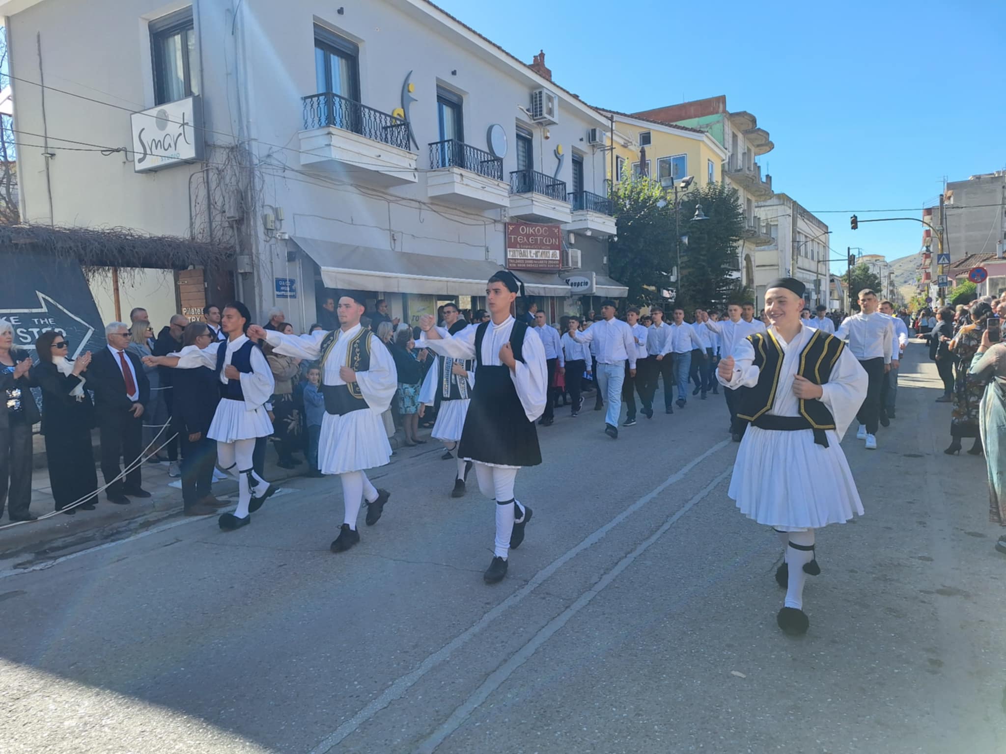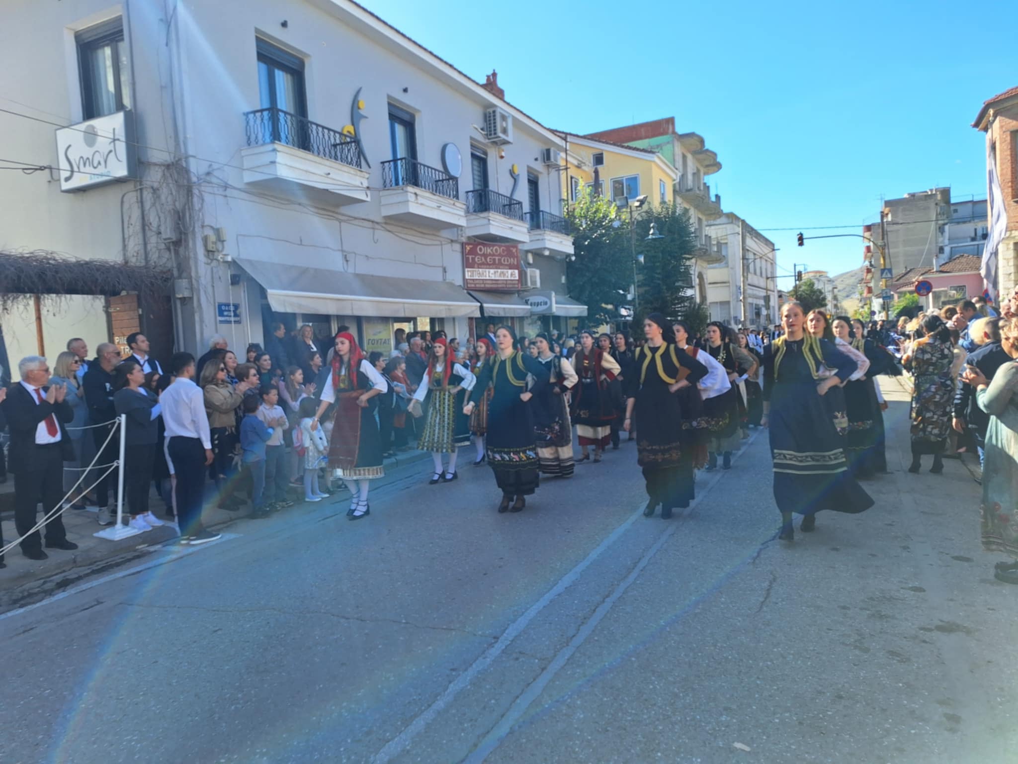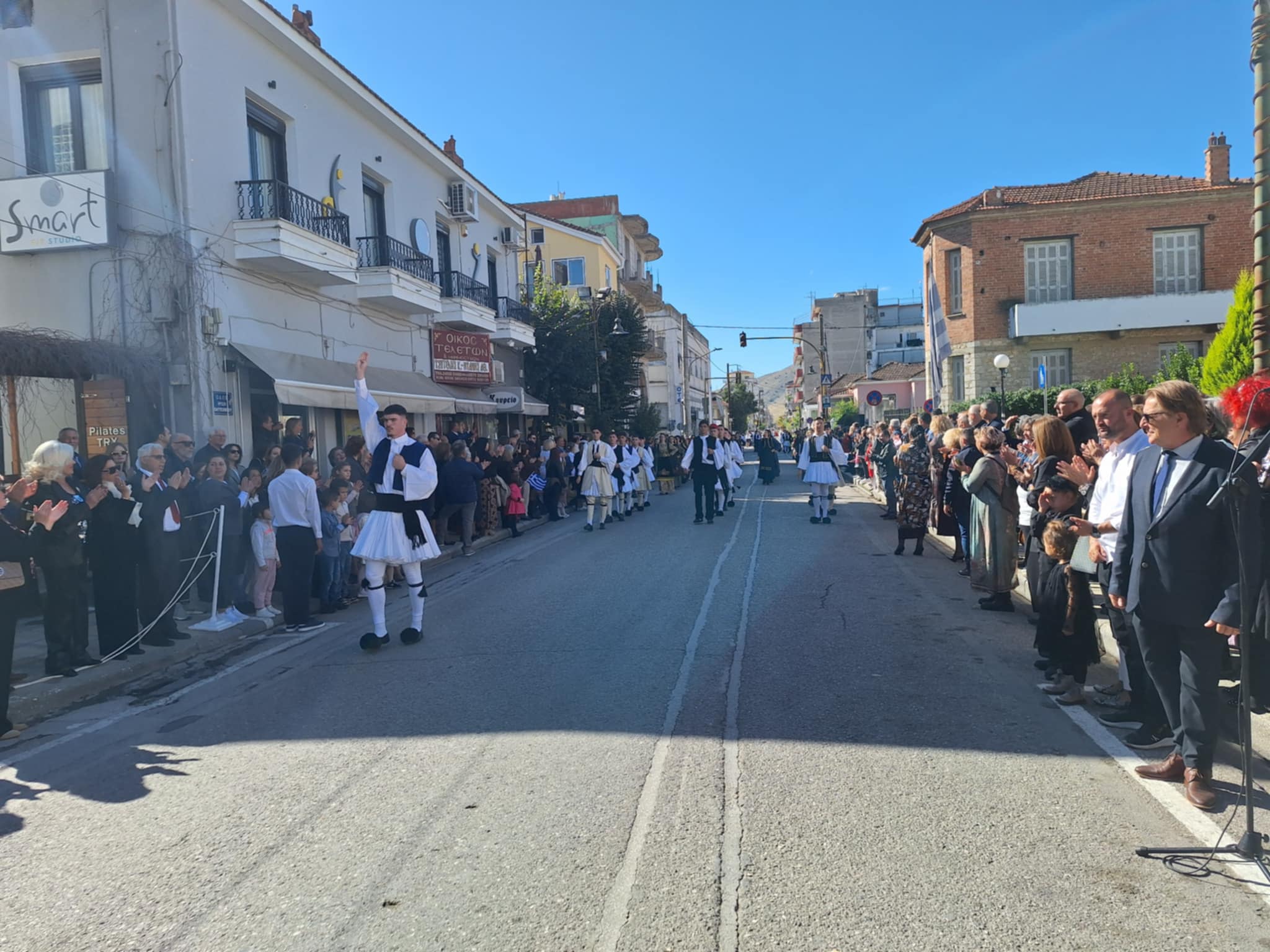 Το μέγα πλήθος του κόσμου παρακολούθησε τη μαθητική παρέλαση που έγινε με τους ήχους της φιλαρμονικής του δήμου και καταχειροκρότησε τους μαθητές.