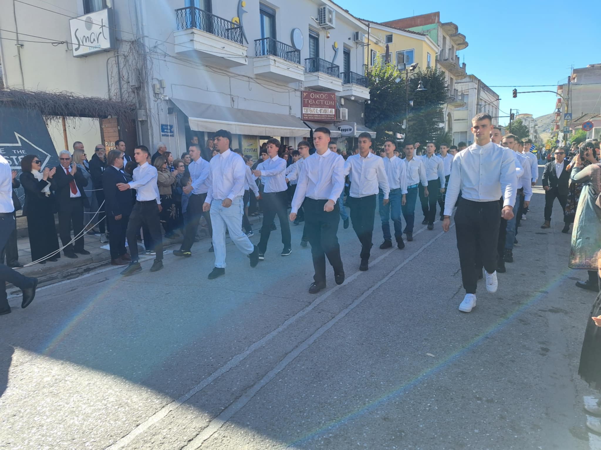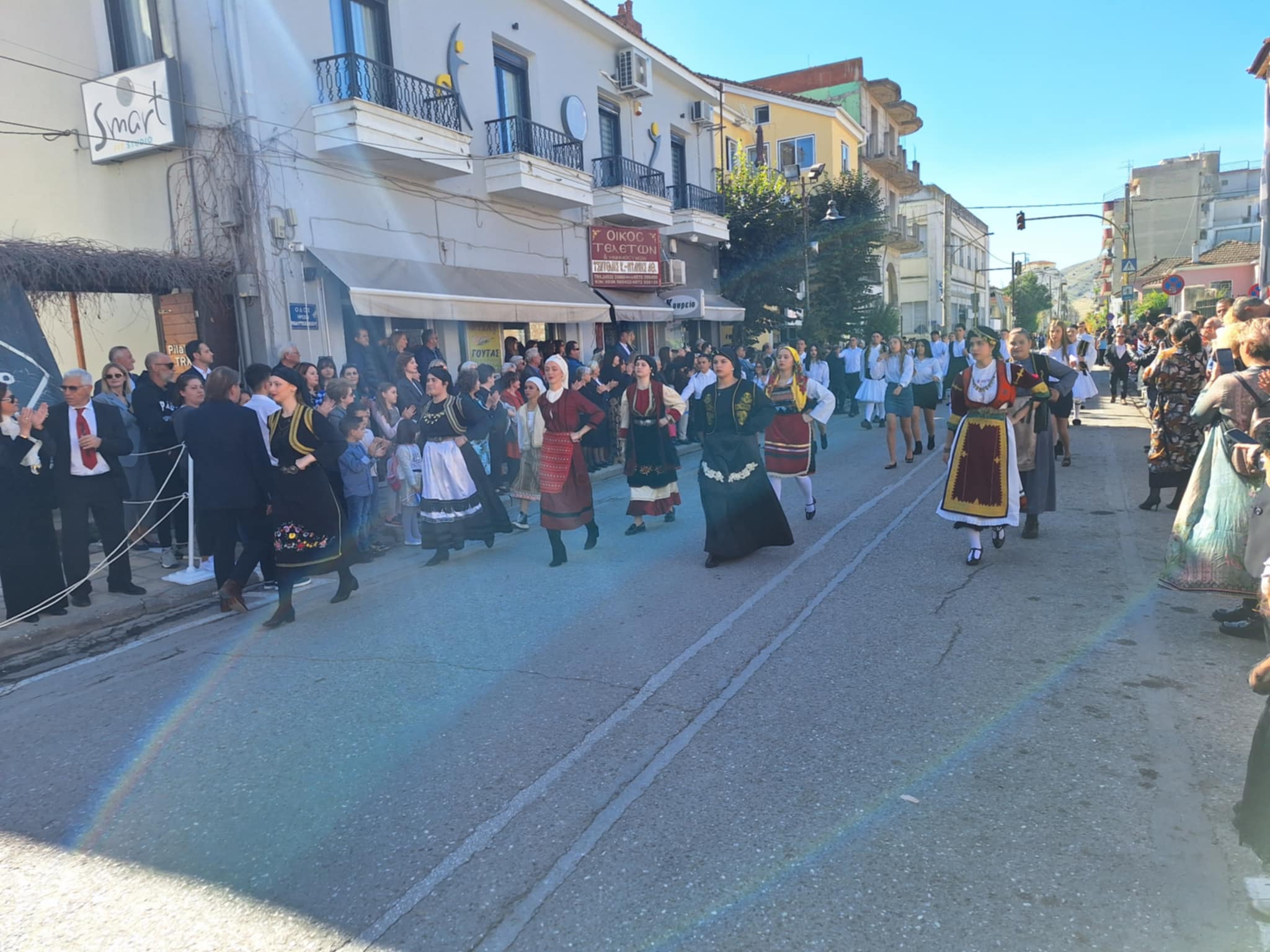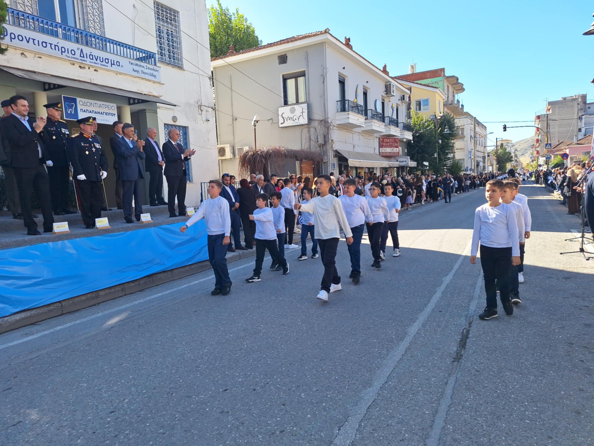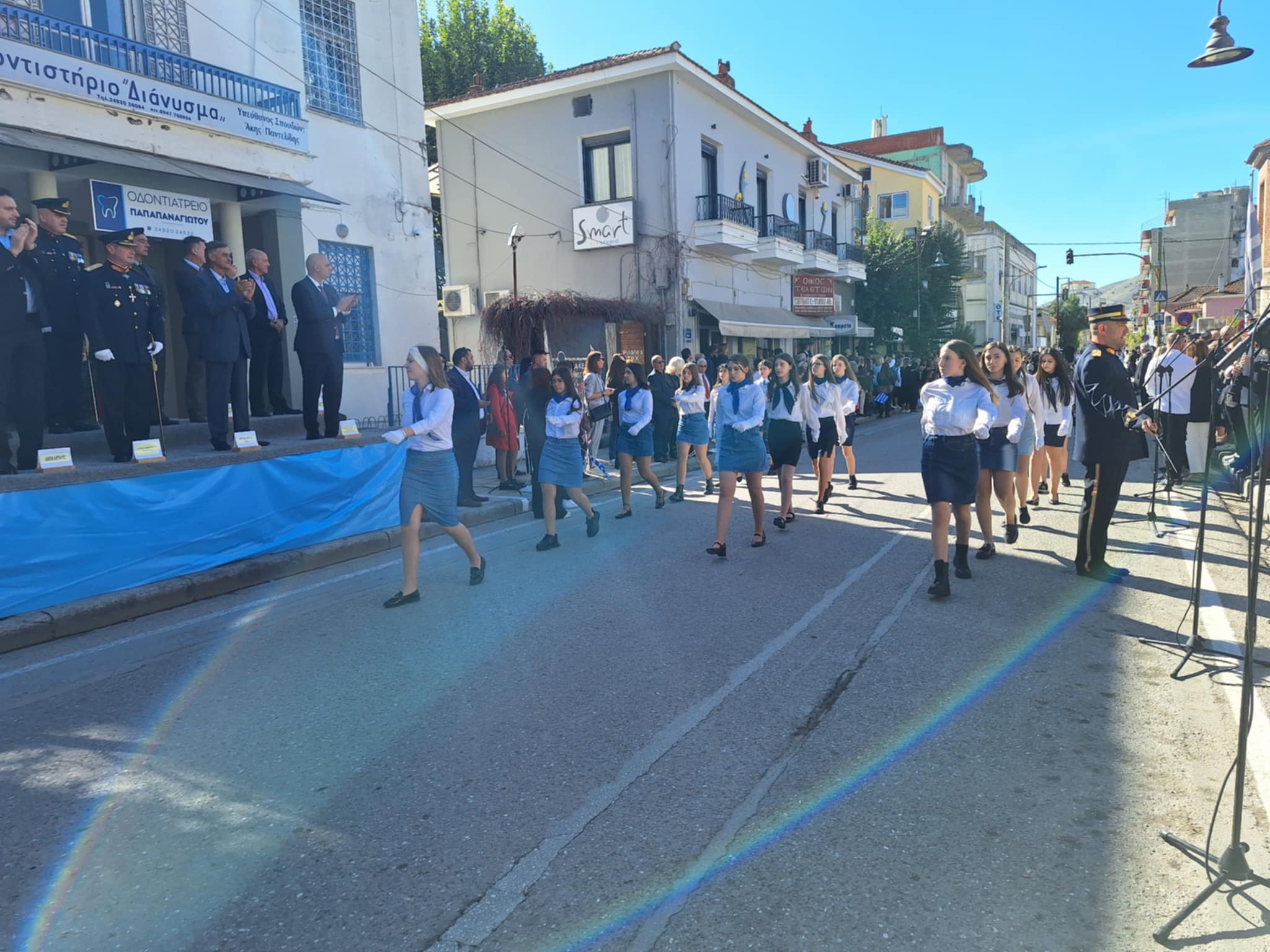 Το μέγα πλήθος του κόσμου παρακολούθησε τη μαθητική παρέλαση που έγινε με τους ήχους της φιλαρμονικής του δήμου και καταχειροκρότησε τους μαθητές.
