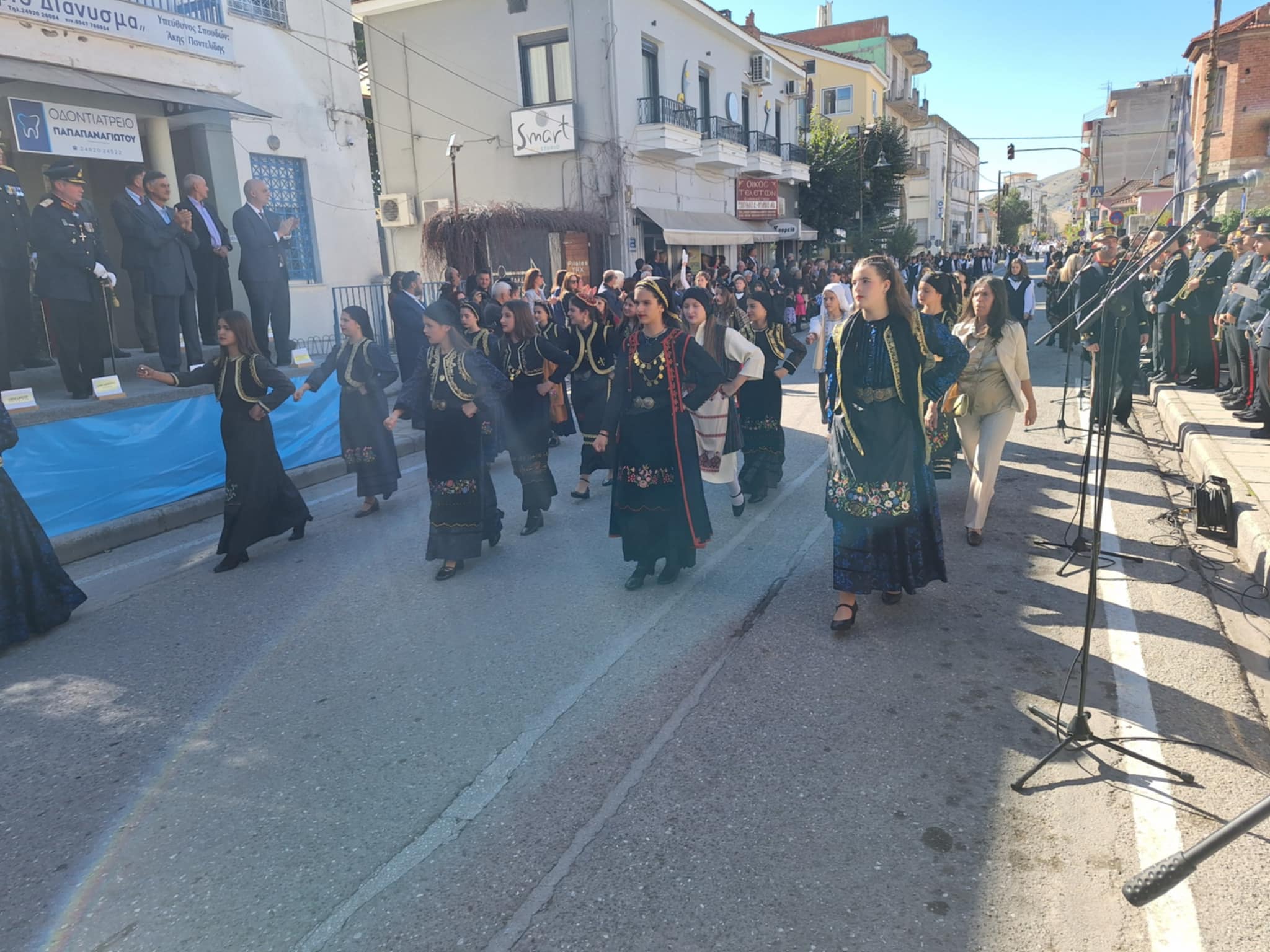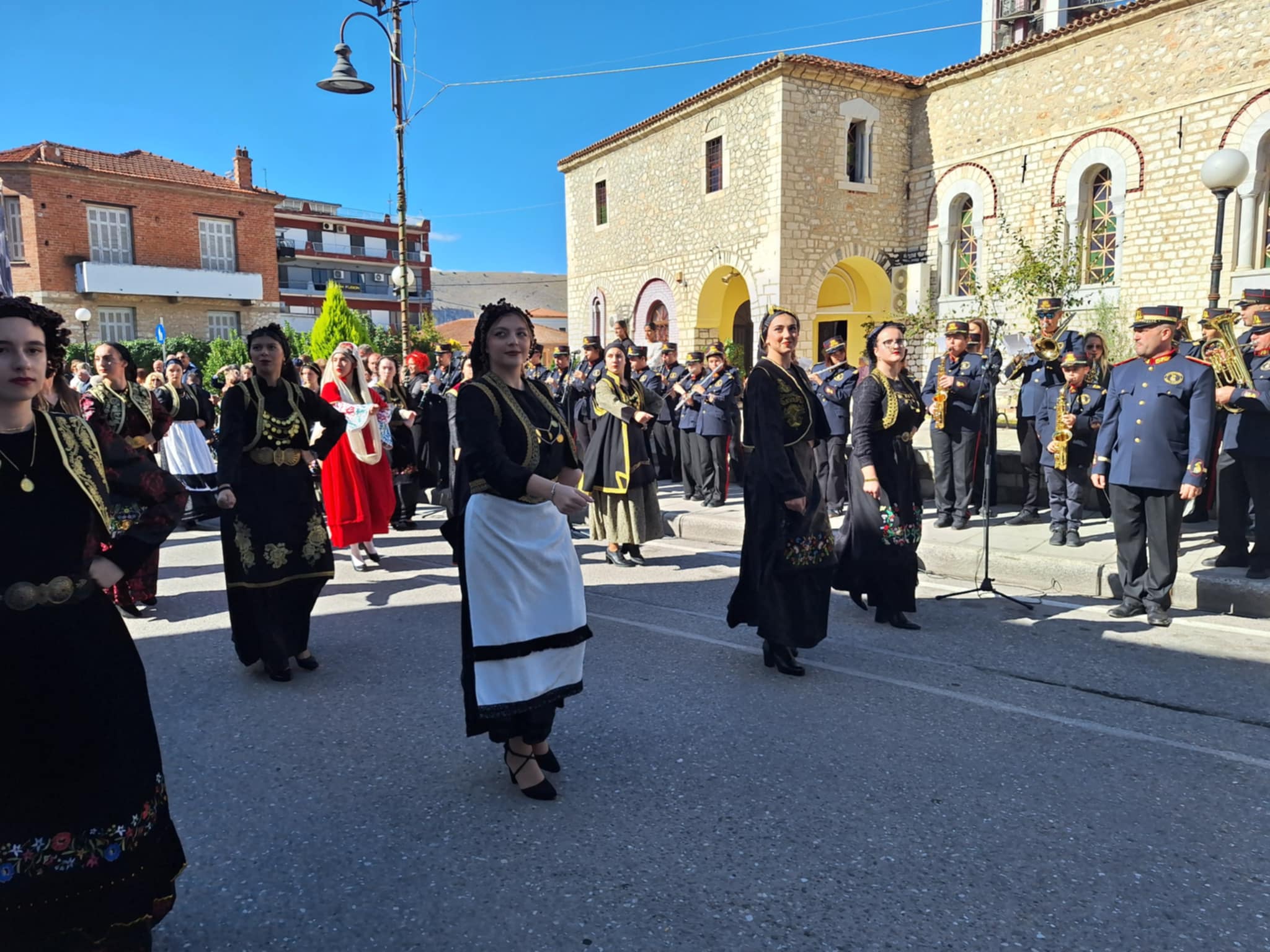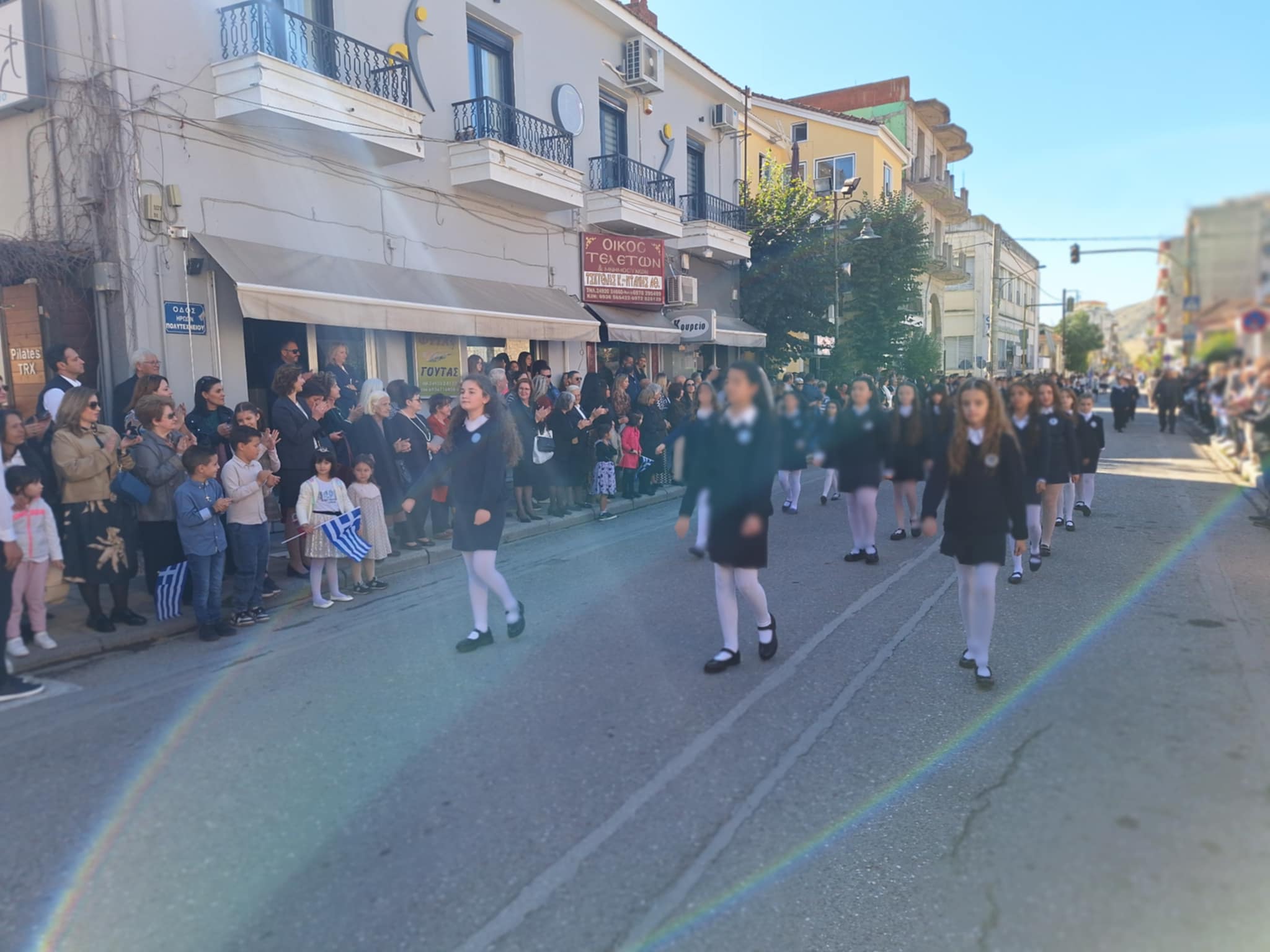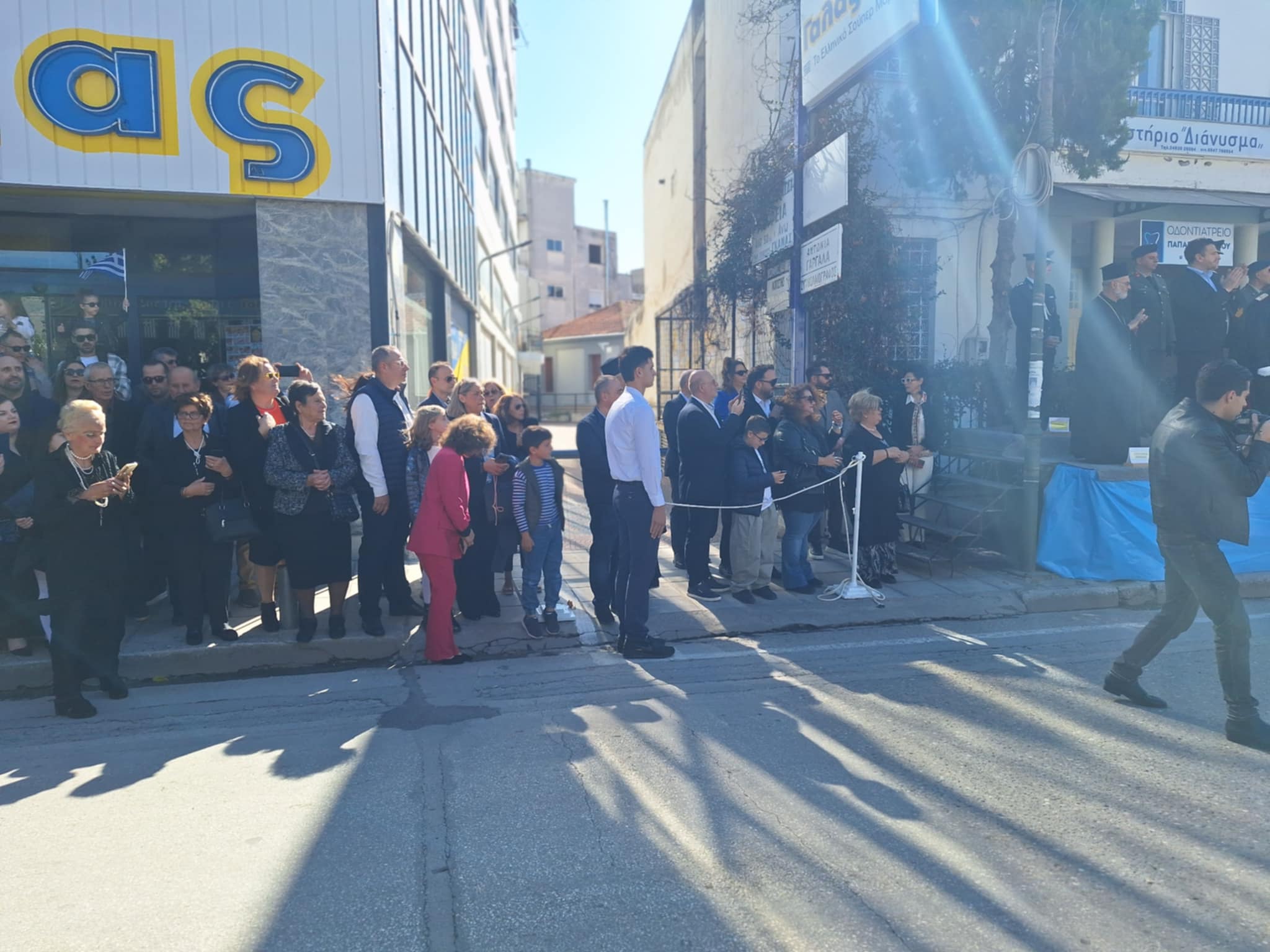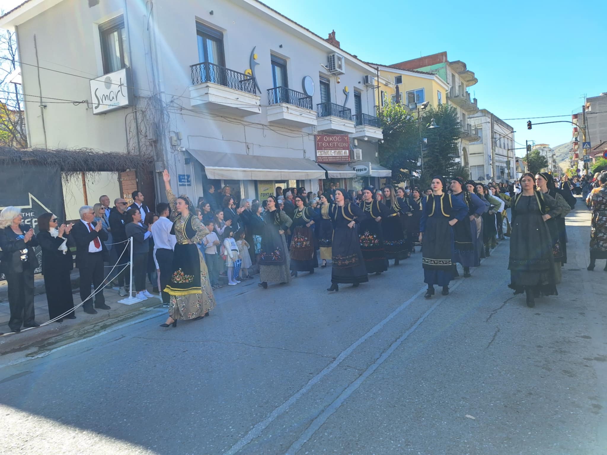 Το μέγα πλήθος του κόσμου παρακολούθησε τη μαθητική παρέλαση που έγινε με τους ήχους της φιλαρμονικής του δήμου και καταχειροκρότησε τους μαθητές.