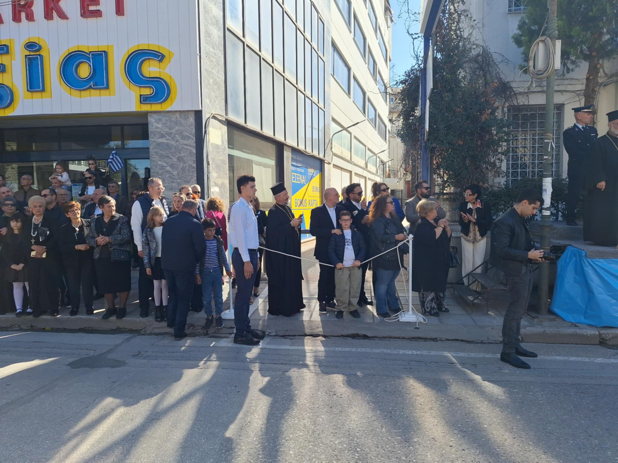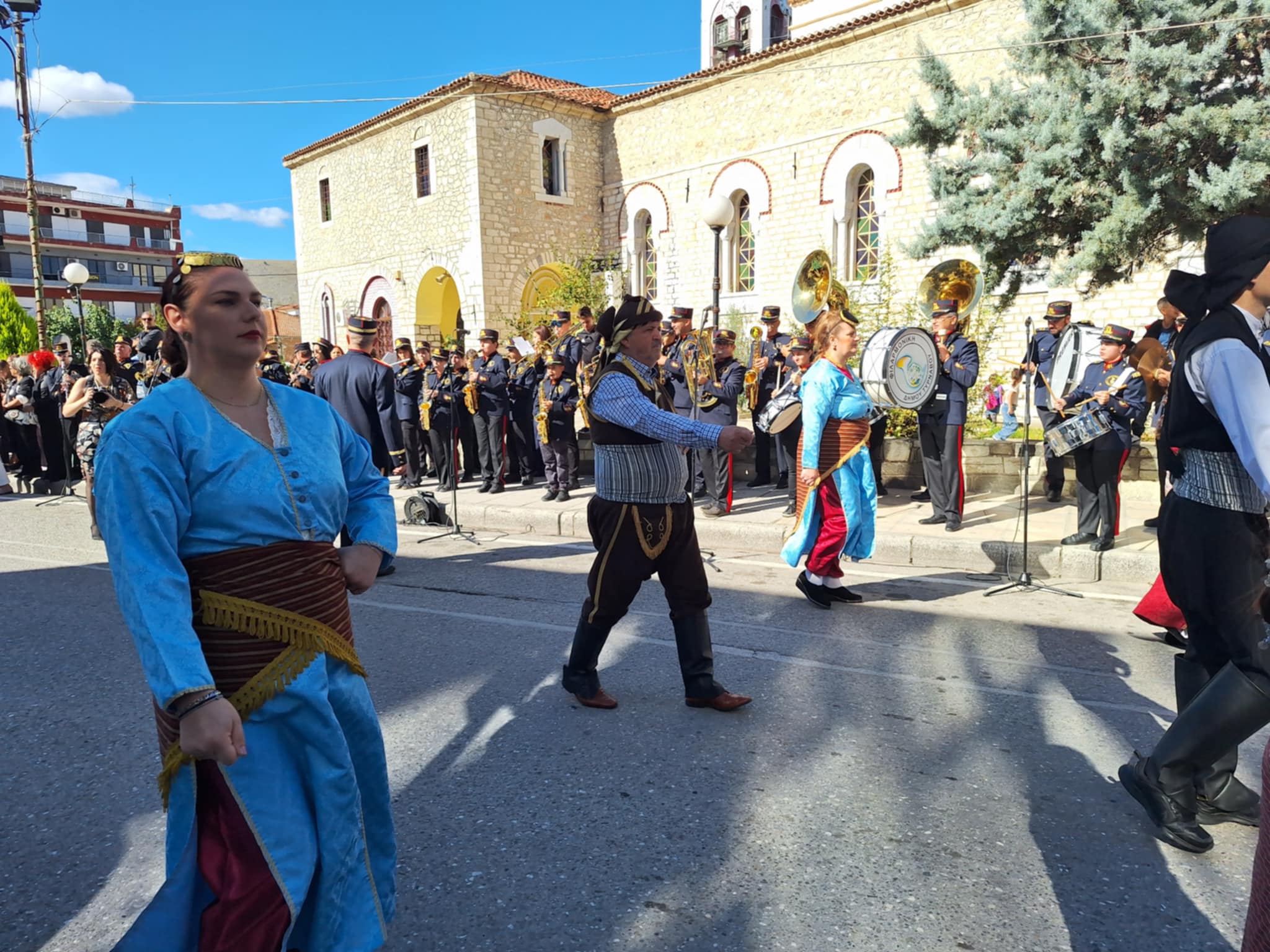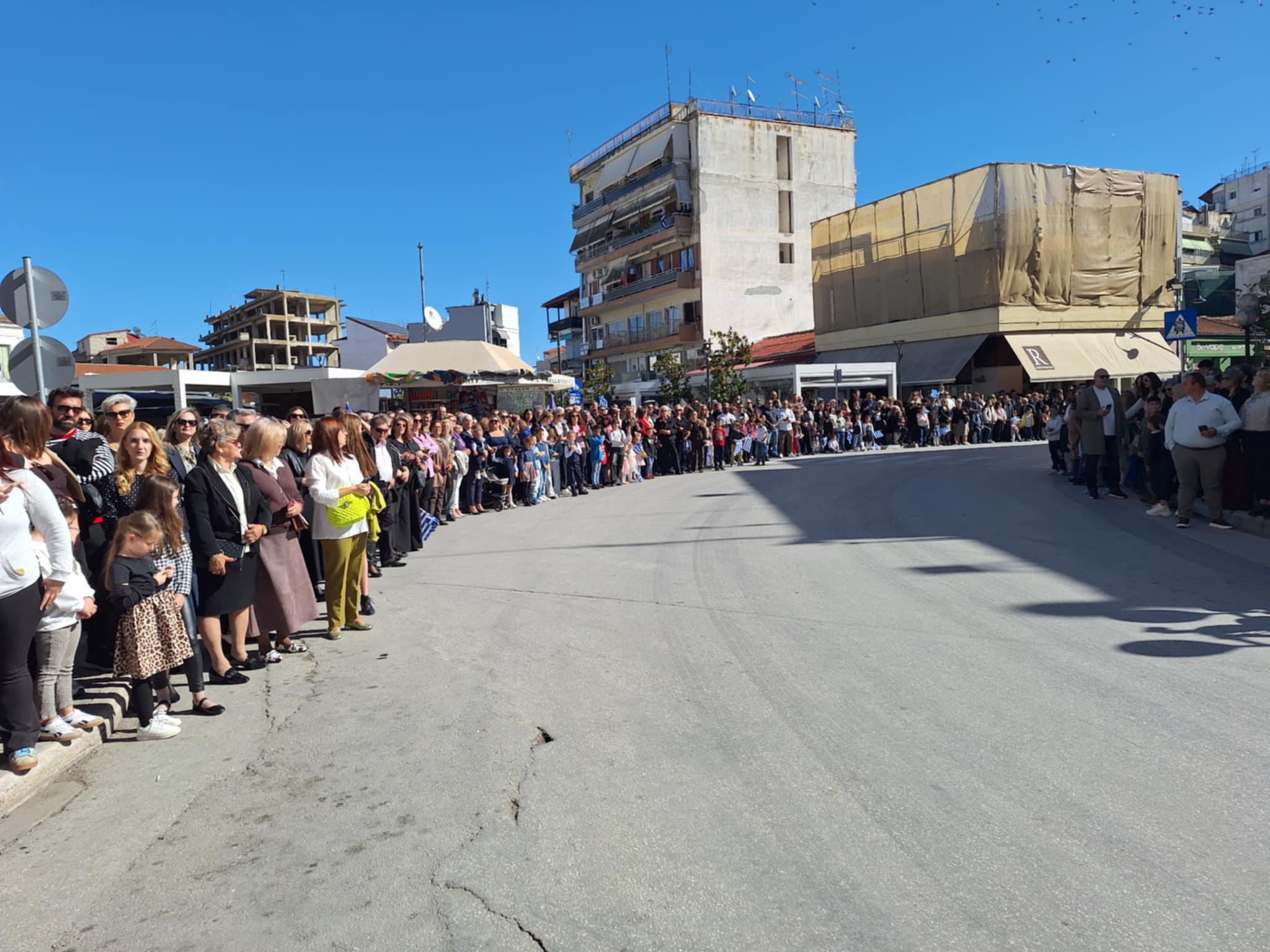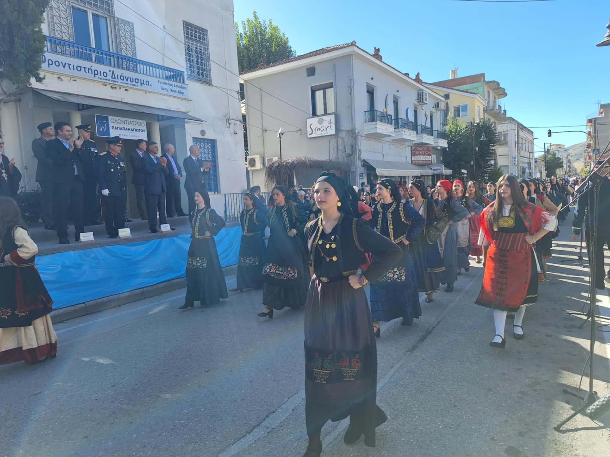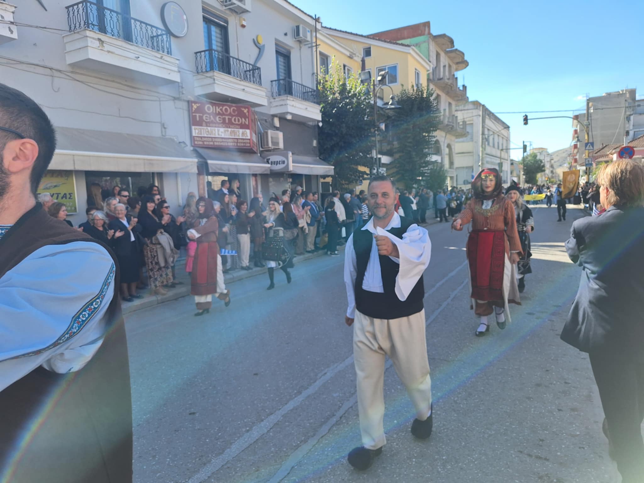 Το μέγα πλήθος του κόσμου παρακολούθησε τη μαθητική παρέλαση που έγινε με τους ήχους της φιλαρμονικής του δήμου και καταχειροκρότησε τους μαθητές.