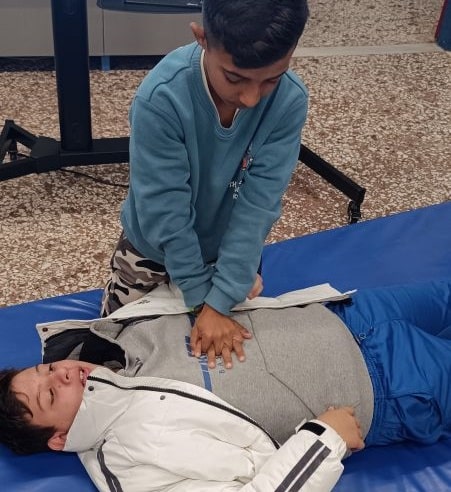 Οι μαθητές συμμετείχαν ενεργά, παρακολουθώντας την επίδειξη των τεχνικών, θέτοντας ερωτήσεις και συμμετέχοντας στη συζήτηση, γεγονός που έκανε τη δράση ακόμη πιο διαδραστική και εποικοδομητική. Παράλληλα, προβλήθηκε ενημερωτικό PowerPoint, το οποίο βοήθησε στη σαφή κατανόηση των βημάτων και των διαδικασιών των Πρώτων Βοηθειών.