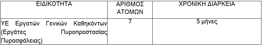Ο Δήμος Τεμπών ύστερα από την απόφαση της Δημοτικής Επιτροπής, ανακοινώνει ότι θα προσλάβει προσωπικό με σύμβαση εργασίας ιδιωτικού δικαίου ορισμένου χρόνου, συνολικού αριθμού επτά (7) ατόμων, για την κάλυψη κατεπειγουσών εποχικών αναγκών πυροπροστασίας του Δήμου.