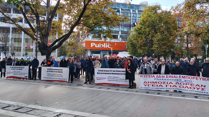 Τα Κέντρα Υγείας του Νομού είναι εγκαταλελειμμένα, με άνω των 100 κενές οργανικές θέσεις ιατρών, έχουν προ πολλού περιέλθει σε κατάσταση επαπειλούμενης κατάρρευσης και αδυνατούν να υπηρετήσουν τους υψηλούς και αναγκαίους σκοπούς της Πρωτοβάθμιας Φροντίδας Υγείας. Η πολιτική της παρούσας κυβέρνησης, αλλά και των προηγούμενων, οδηγεί κυνικά σε λειτουργική αδυναμία και κλείσιμο Κλινικών και Τμημάτων και στην συνέχεια με την επίκληση της «έκτακτης κατάστασης» που η ίδια δημιούργησε δίνει χώρο για να «αλωνίζουν» στα Νοσοκομεία οι ιδιώτες μέσω των αναθέσεων, των εργολαβιών και των ΣΔΙΤ. Η δραματική υποβάθμιση των υπηρεσιών υγείας φέρνει τις αναβολές προγραμματισμένων χειρουργικών επεμβάσεων και θεραπειών. “Ακολούθησε πορεία στους δρόμους τη πόλης που κατέληξε συμβολικά έξω από το Γενικό Νοσοκομείο.