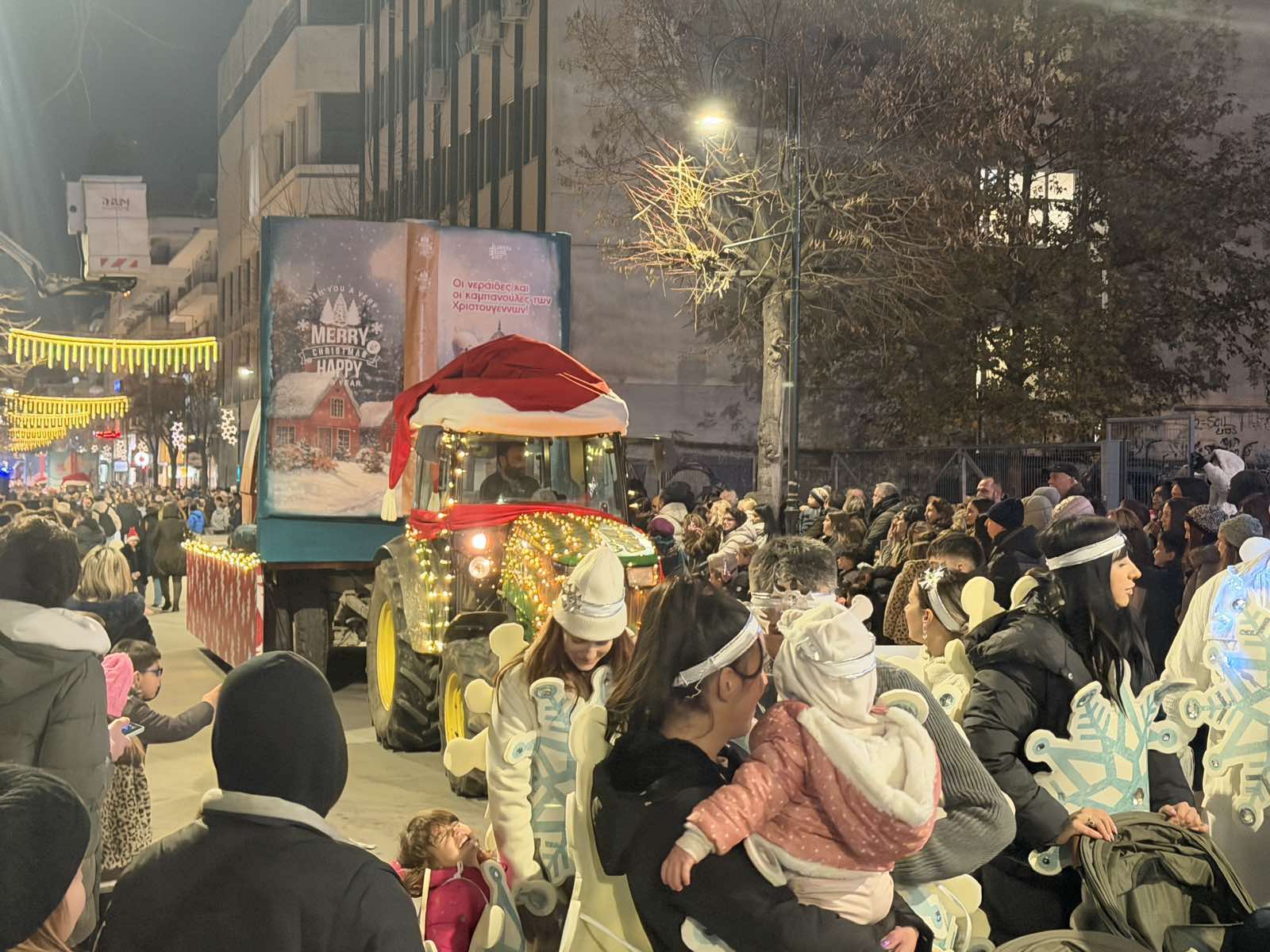 Οι κεντρικοί δρόμοι της Λάρισας ντύνονται στα γιορτινά τους και φιλοξενούν μια διαδρομή γεμάτη χρώματα, μουσική και χριστουγεννιάτικη φαντασία, ενώ με το πέρας της παρέλασης, έχει προγραμματιστεί ένα μεγάλο, γιορτινό πάρτι, με DJs, στην Κεντρική πλατεία.