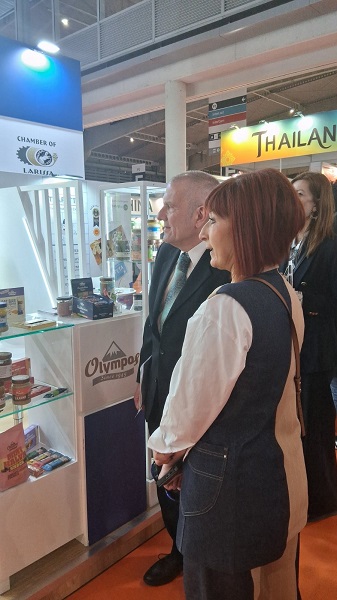 Την έκθεση επισκέφθηκε στις 23-3-2026 ο Σύμβουλος Οικονομικών και Εμπορικών Υποθέσεων Α’, Επικεφαλής Γραφείου ΟΕΥ Μαδρίτης, κ. Παντελής Γκάσιος, ο οποίος πέρασε από τα λαρισαϊκά και ελληνικά περίπτερα, συνομίλησε με τους εκθέτες και γνώρισε από κοντά τα προϊόντα μας.