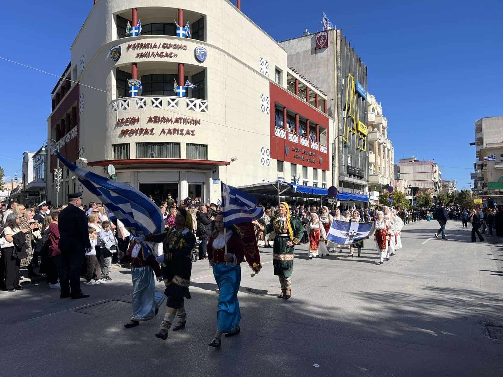 Με τη μαθητική και στρατιωτική παρέλαση κορυφώθηκαν σήμερα στη Λάρισα οι επίσημες εκδηλώσεις για την εθνική επέτειο της 28ης Οκτωβρίου 1940, στις οποίες συμμετείχαν εκπρόσωποι των τοπικών πολιτικών, στρατιωτικών και θρησκευτικών αρχών, των φορέων της περιοχής και πλήθους κόσμου που τίμησαν το ιστορικό όχι του λαού.