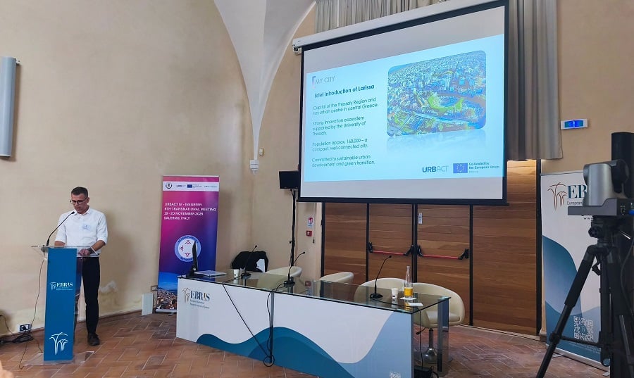 Στην πόλη του Σαλέρνο της Ιταλίας πραγματοποιήθηκε στις 19 και 20 Νοεμβρίου 2025, η 6η και τελευταία Διακρατική Συνάντηση του έργου «In4Green – Greener Industrial Cities», που υλοποιείται στο πλαίσιο του ευρωπαϊκού προγράμματος εδαφικής συνεργασίας URBACT IV με τον Δήμο Λαρισαίων να αποτελεί έναν από τους εταίρους του δικτύου.