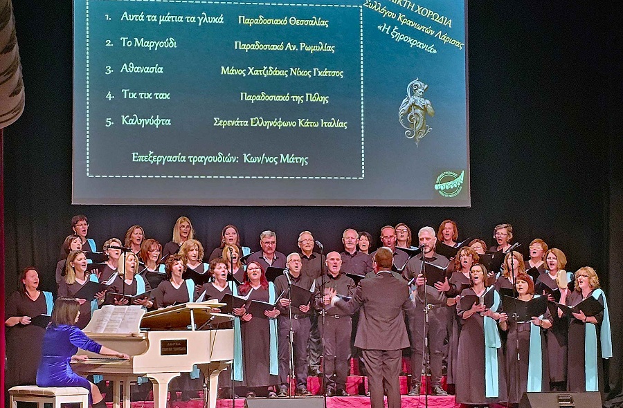 Η Μικτή Χορωδία Κρανιωτών Λάρισας παρουσίασε σε τετράφωνη επεξεργασία a capella και συνοδεία πιάνου ένα απαιτητικό πρόγραμμα με παραδοσιακά τραγούδια της Θεσσαλίας, της Αν. Ρωμυλίας και της Κάτω Ιταλίας (magna Grecia) καθώς και συνθέσεις Ελλήνων μουσουργών. Για την απόδοση της χειροκροτήθηκε θερμά από τους από όλους τους παραβρισκόμενους και απέσπασε κολακευτικά σχόλια.