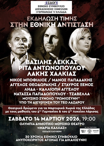 Η εκδήλωση διοργανώνεται από το Εθνικό Συμβούλιο Διεκδίκησης των Οφειλών της Γερμανίας προς την Ελλάδα (ΕΣΔΟΓΕ), με την υποστήριξη του Δήμου Αθηναίων και του Οργανισμού Πολιτισμού, Αθλητισμού και Νεολαίας του Δήμου Αθηναίων (ΟΠΑΝΔΑ). Έχει μουσικοθεατρικό χαρακτήρα και θα πλαισιωθεί από καταξιωμένους καλλιτέχνες, όπως οι Βασίλης Λέκκας, Λάκης Χαλκιάς, Ρίτα Αντωνοπούλου και Μάνος Παπαδάκης. Η διασχολική ομάδα είχε ήδη συνεργαστεί με τον Λάκη Χαλκιά και τον Μάνο Παπαδάκη σε εκδήλωση στο Ηράκλειο Κρήτης, τον περασμένο Σεπτέμβριο του 2025.