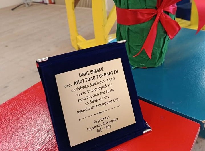 Συναντήθηκαν παλιοί συμμαθητές και οι καθηγητές τους στο Λύκειο Συκουρίου – Δόθηκε πλακέτα στον Απ. Σουρλατζή