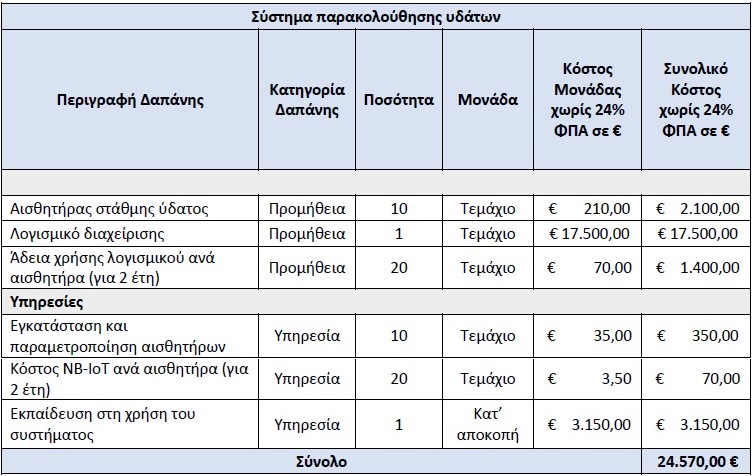 – Ένα (1) Σύστημα παρακολούθησης στάθμης υδάτων και