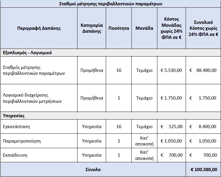 – Δεκαέξι (16) σταθμούς μέτρησης περιβαλλοντικών παραμέτρων και
