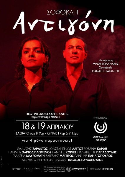 Ο βραβευμένος σκηνοθέτης Θανάσης Σαράντος (Βραβείο Κάρολος Κουν Σκηνοθεσίας και Ερμηνείας 2023), μετά την επιτυχημένη πορεία του Οιδίποδα Τύραννου στην Ελλάδα και στο εξωτερικό, επιστρέφει στο ΘΕΣΑΛΙΚΟ ΘΕΑΤΡΟ με την «Αντιγόνη» του Σοφοκλή για 4 μόνο παραστάσεις στις 18 και 19 Απριλίου στο Θέατρο «Κώστας Τσιάνος».