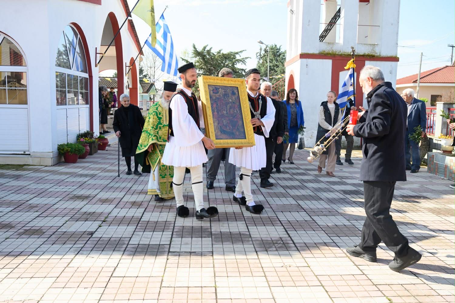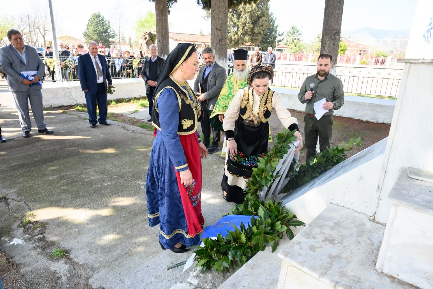 Μετά την τέλεση της πανηγυρικής θείας λειτουργίας τα μέλη του πολιτιστικού συλλόγου ντυμένα με τις παραδοσιακές φορεσιές βαστάζοντας ανά χείρας το παλαιό εικόνισμα της Παναγίας της Φανερωμένης και την εικόνα των Βαΐων, και έχοντας τον θυρεό της πατρίδος μας κατευθύνθηκαν στον τάφο των ηρώων όπου έγιναν τα αποκαλυπτήρια της νέας μαρμάρινης επιγραφής με τα ονόματα των πεσόντων και τελέστηκε τρισάγιο για την ανάπαυση των ψυχών τους.