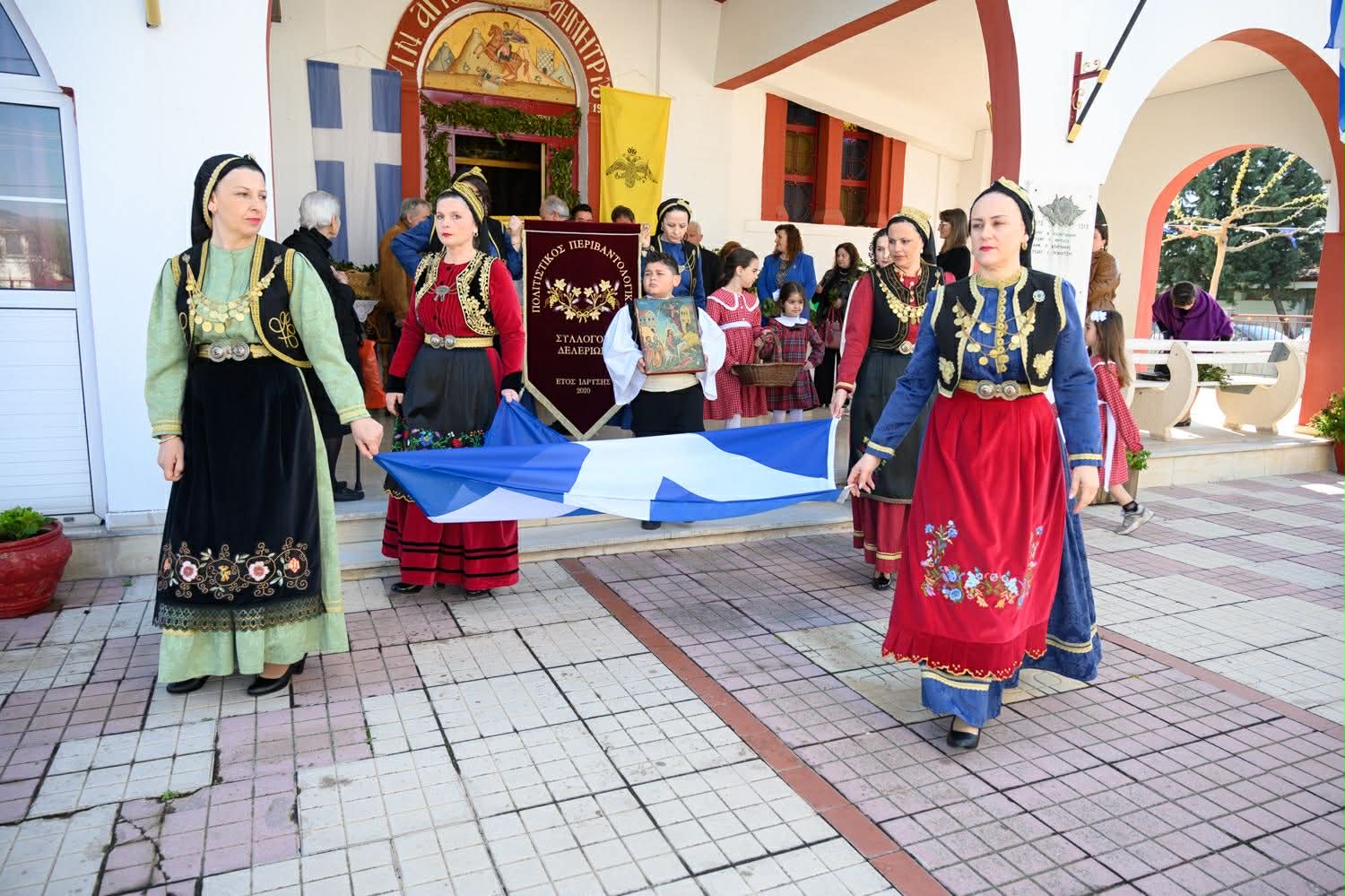 Κορυφαία στιγμή, η απονομή της εικόνας της Παναγίας στην χοροδιδάσκαλο του Πολιτιστικού Συλλόγου κ. Ελένη Φλίκα – Γκιλέκα, από τον πρόεδρο της Τ.Κ. Δελερίων κ. Θωμά Γκότση, τον πρώτ. π. Χαράλαμπο Παράσχο και την Πρόεδρο του Συλλόγου διδα Δήμητρα Παράσχου, ως ένδειξη σεβασμού και ευγνωμοσύνης για όσα προσφέρει στο χωριό.