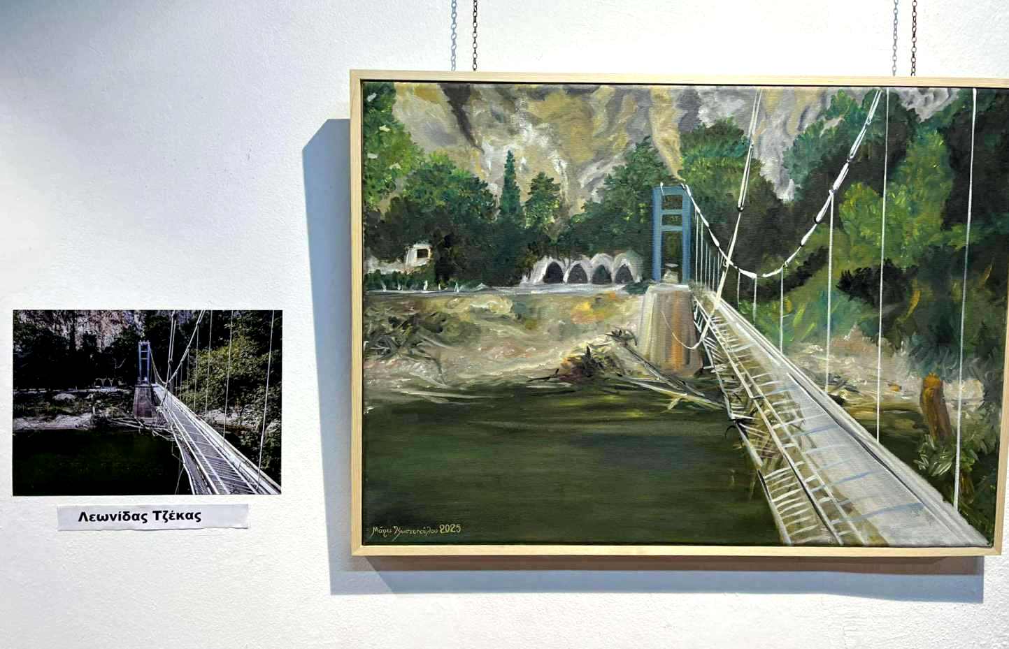 Στην έκθεση που διαρκεί από τις 6 – 11 Οκτωβρίου η εικαστικός Μαρία Κωστοπούλου εκθέτει πίνακες εμπνευσμένους από φωτογραφίες των φωτορεπόρτερς ΤΖΕΚΑ ΛΕΩΝΙΔΑ, ΚΥΔΩΝΑ ΓΙΩΡΓΟΥ, ΚΑΣΤΑΝΑΡΑ ΔΗΜΗΤΡΗ, ΚΟΥΣΙΩΡΑ ΒΑΓΓΕΛΗ, ΑΓΟΡΑΣΤΟΥ ΒΑΣΙΛΗ, ΝΤΑΜΠΛΗ ΒΑΣΙΛΗ, ΚΑΛΙΑΚΟΥΔΑ ΘΑΝΑΣΗ, ΤΣΙΑΡΑ ΚΩΣΤΑ, που απαθανατίζουν στιγμές καταστροφής από τα πρόσφατα έντονα πλημμυρικά φαινόμενα στη Θεσσαλία.
