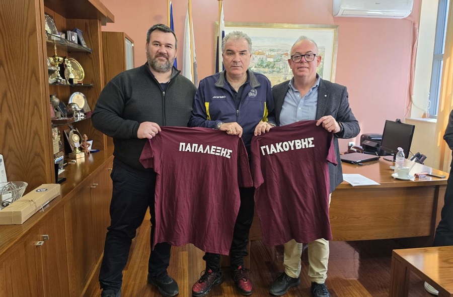 Οι εκπρόσωποι του συνδέσμου προσέφεραν αναμνηστικές φανέλες στον Πρόεδρο και τον Α’ Αντιπρόεδρο του Επιμελητηρίου Λάρισας.