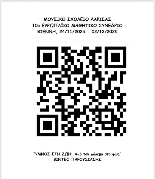 Το διάστημα 24 με 27 Νοεμβρίου 2025 το Μουσικό Σχολείο Λάρισας συμμετείχε με ιδιαίτερη επιτυχία στο 10ο Ευρωπαϊκό Μαθητικό Συνέδριο στη Βιέννη, το οποίο φέτος συγκέντρωσε 350 σχολεία, δίνοντας στους συμμετέχοντες μια μοναδική ευκαιρία διαλόγου, συνεργασίας και καλλιτεχνικής ανταλλαγής. Το κεντρικό θέμα του συνεδρίου ήταν «Από την Ευρώπη του Παρελθόντος στην Ευρώπη του Μέλλοντός μας».