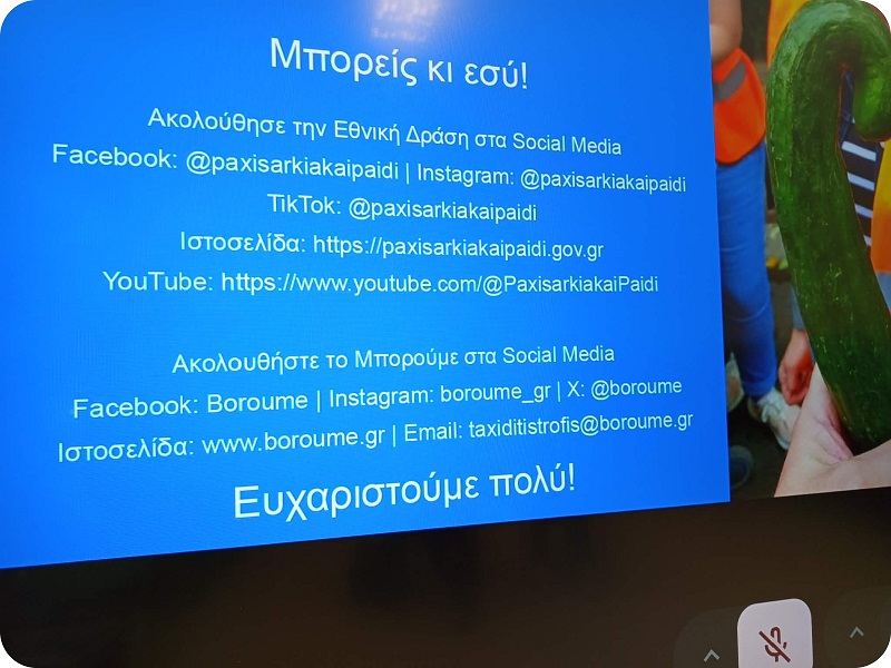 Εργαστήριο ευαισθητοποίησης με αντικείμενο τη μείωση της σπατάλης τροφίμων και την προώθηση της υγιεινής και βιώσιμης διατροφής. Το εργαστήρια διεξήχθη διαδικτυακά και διήρκεσε 1 διδακτική ώρα (45 λεπτά). Θα ακολουθήσουν:
