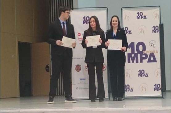 Ο μαθητής της Γ’ τάξης, Νικόλαος Μπλάκος, απέσπασε 1ο Βραβείο και αναδείχθηκε ο καλύτερος εμπειρογνώμονας στην επιτροπή για το Δικαίωμα του παιδιού στην εκπαίδευση, εκπροσωπώντας τις Φιλιππίνες. Παράλληλα, αναδείχθηκε- έπειτα από ψηφοφορία- εισηγητής της επιτροπής, εκφωνώντας την ημέρα της απονομής των βραβείων λόγο στο συνεδριακό κέντρο «Ιωάννης Βελλίδης» όπου πραγματοποιήθηκε η τελετή.
