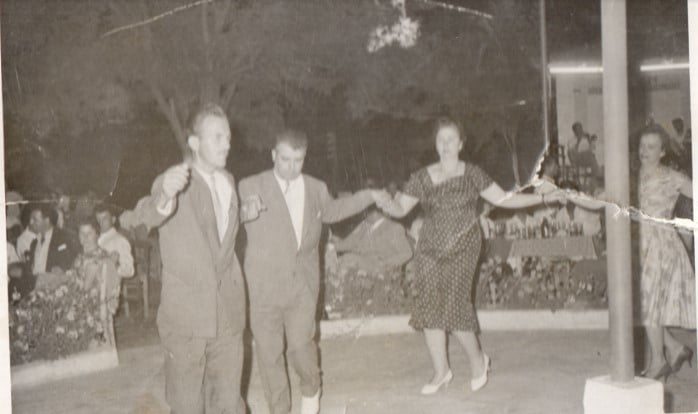 Διασκέδαση στην Τούμπα. Η πίστα της Τούμπας ήταν κυκλική και γύρω γύρω είχε παρτέρια με λουλούδια. Εδώ χορεύει η οικογένεια Μπαράκου. (Οικογενειακό αρχείο Μαρίας και Κώστα Μπαράκου).