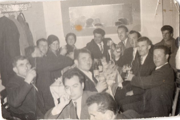 Ο Νικος Μπακανικολας και η γυναίκα του Ντίνα Μπακανικολα, φωτογραφημένοι οικογενειακά μέσα στον «Βράχο», με μεγάλη παρέα. (Οικογενειακό αρχείο Μαρίας και Κώστα Μπαράκου).