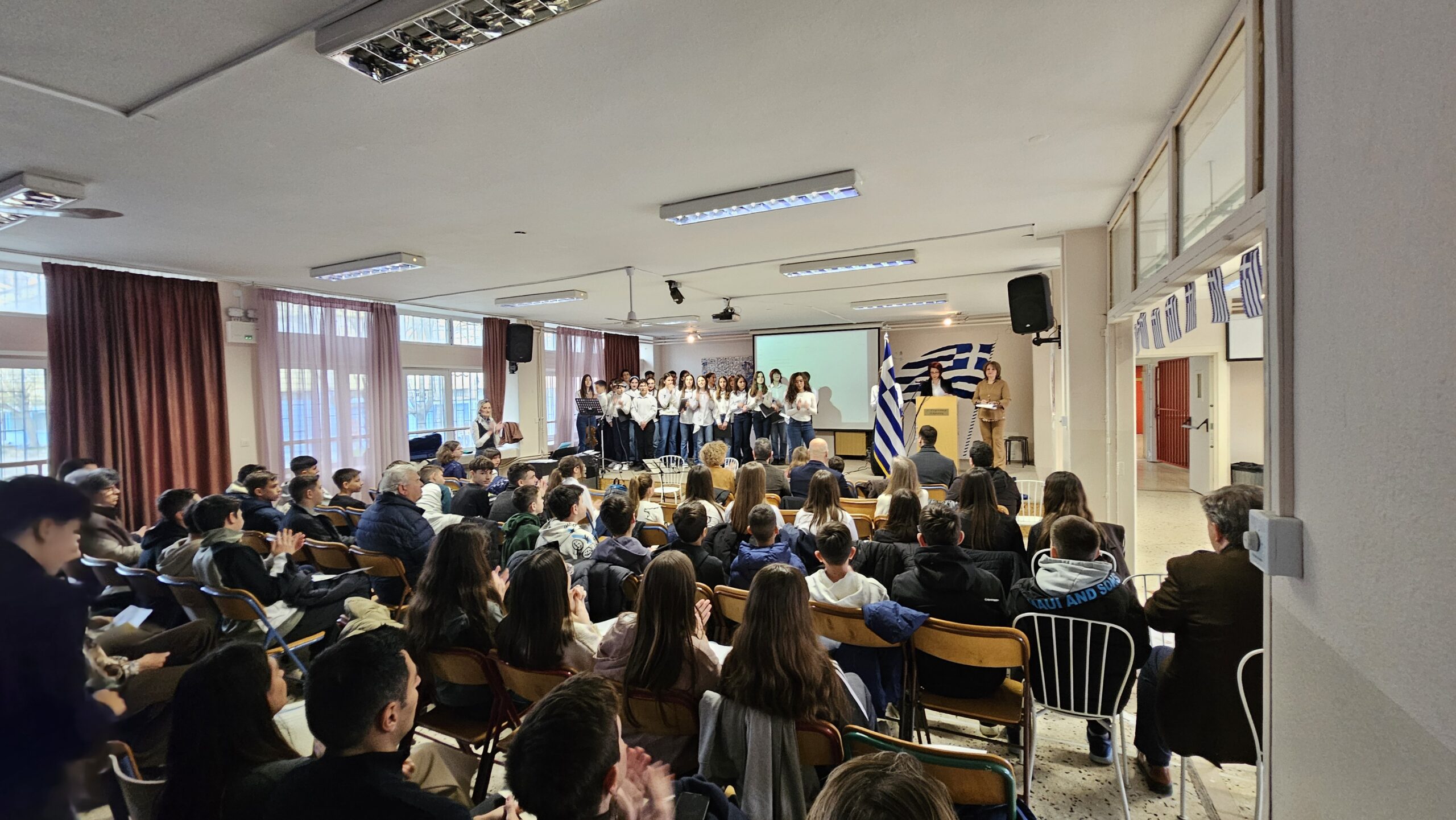 Η χορωδία του σχολείου πλαισίωσε τη γιορτή με μελωδικές και άρτια εκτελεσμένες μουσικές επιλογές, δημιουργώντας μια ατμόσφαιρα υψηλής αισθητικής. Ιδιαίτερη εντύπωση προκάλεσαν και τα θεατρικά δρώμενα, μέσα από τα οποία αναδείχθηκαν σημαντικές στιγμές της ελληνικής ιστορίας με ευαισθησία, φαντασία και σύγχρονη προσέγγιση. Η εκδήλωση ολοκληρώθηκε με παραδοσιακούς χορούς, γεμάτους ενέργεια, ρυθμό και αυθεντικότητα.